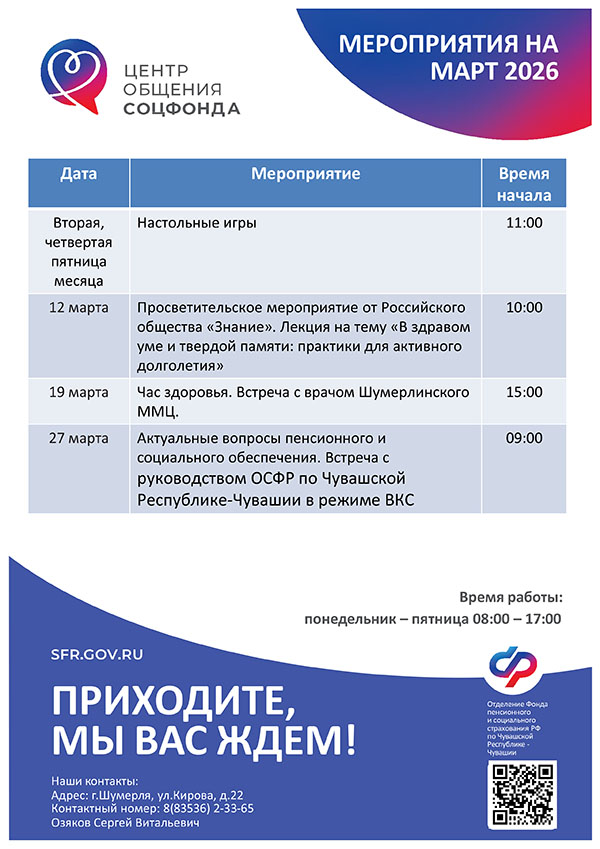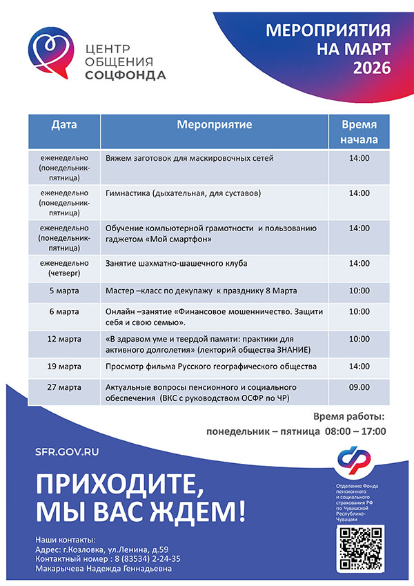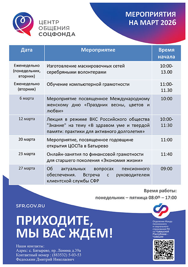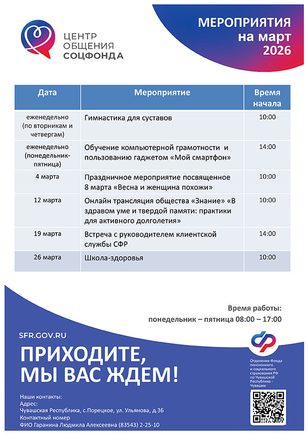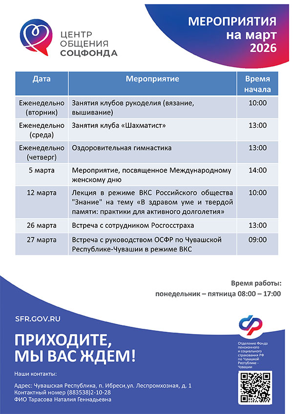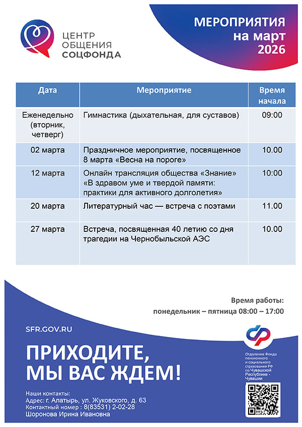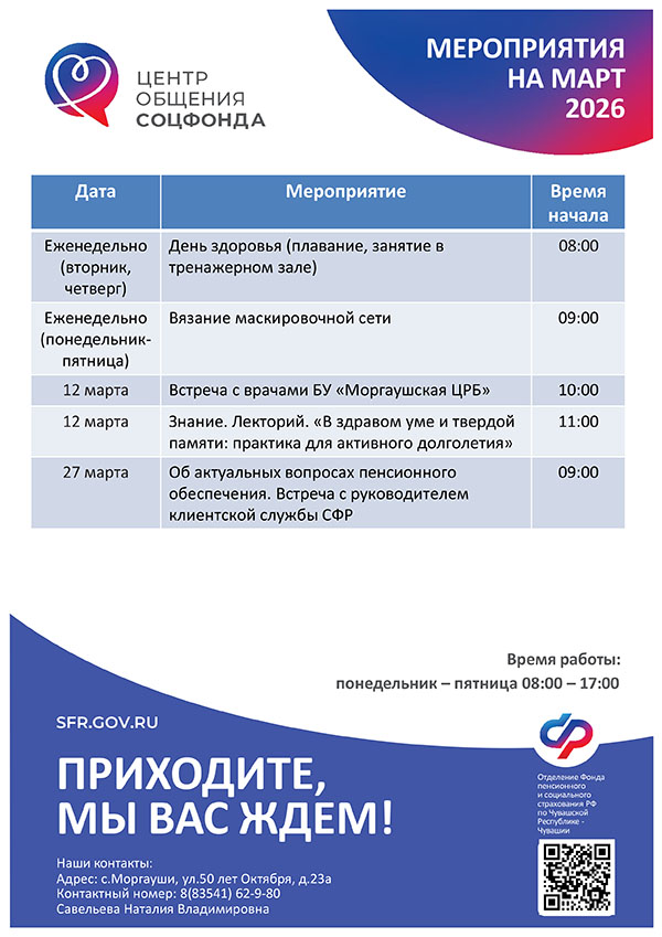 Афиша мероприятий Центров общения старшего поколения на МАРТ 2026 года