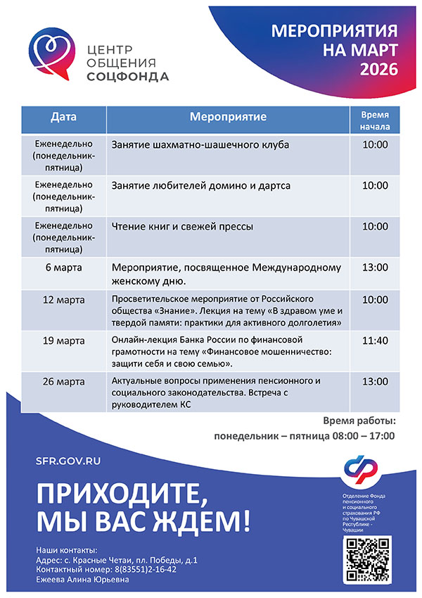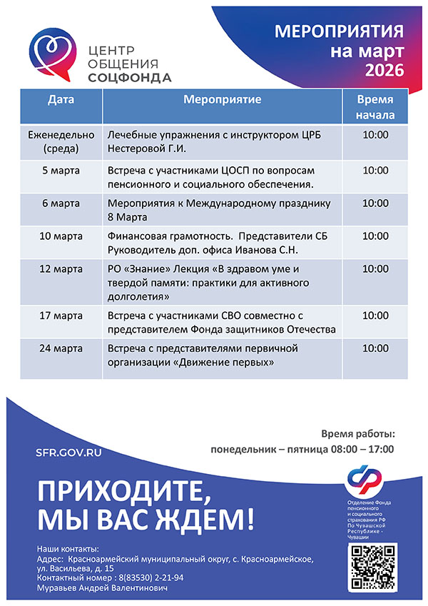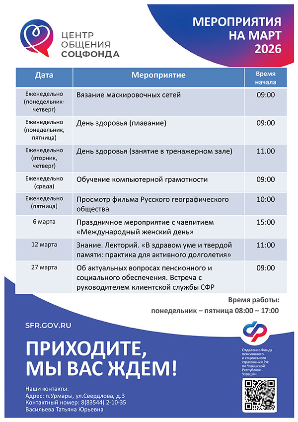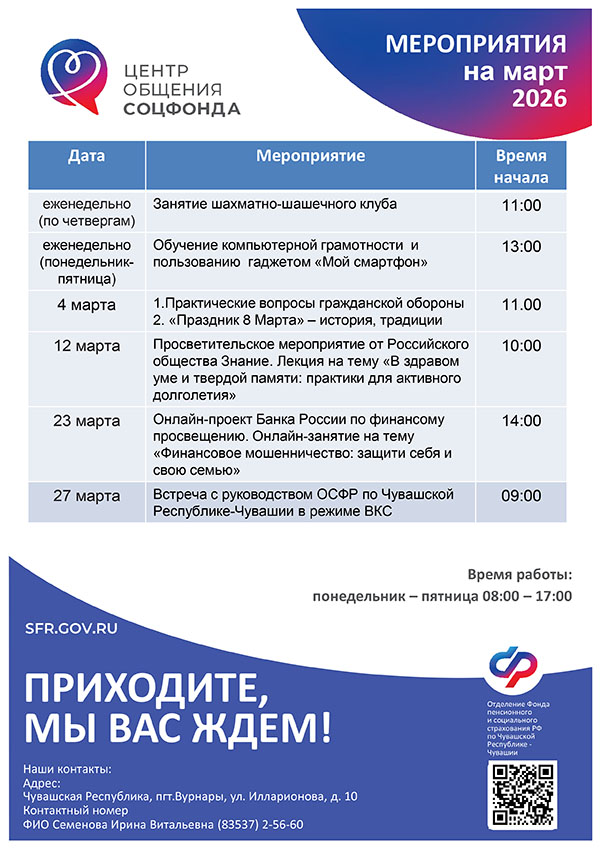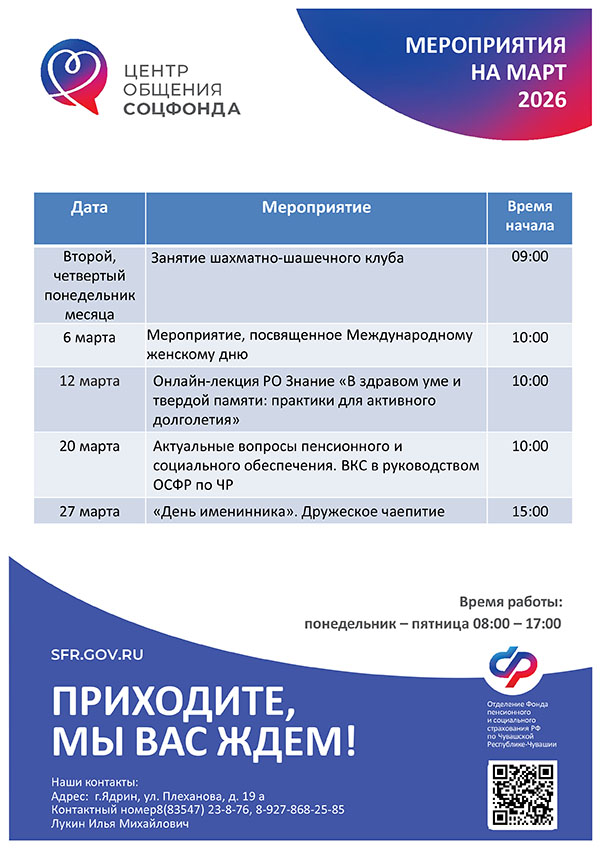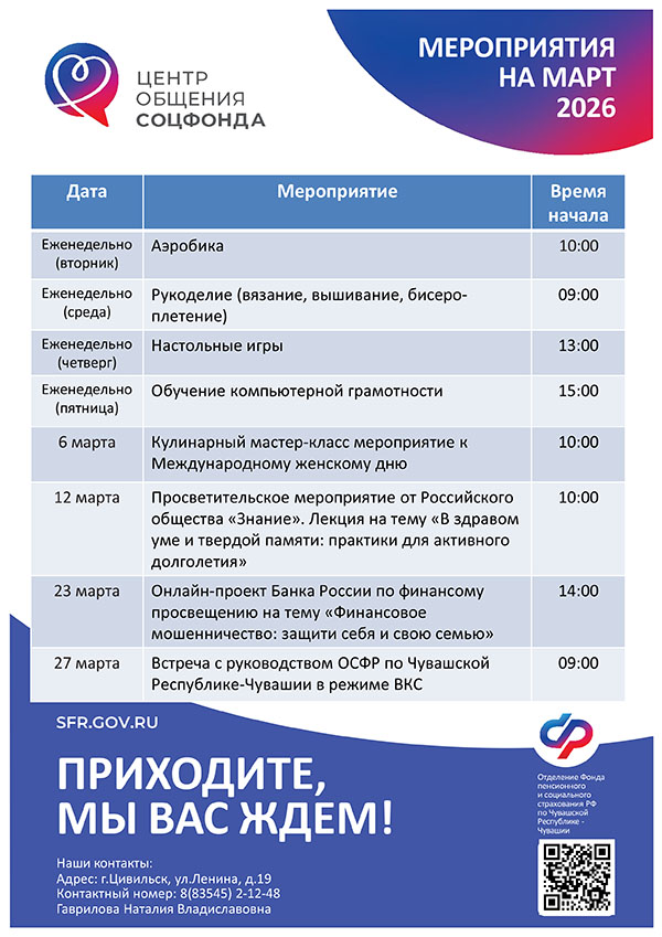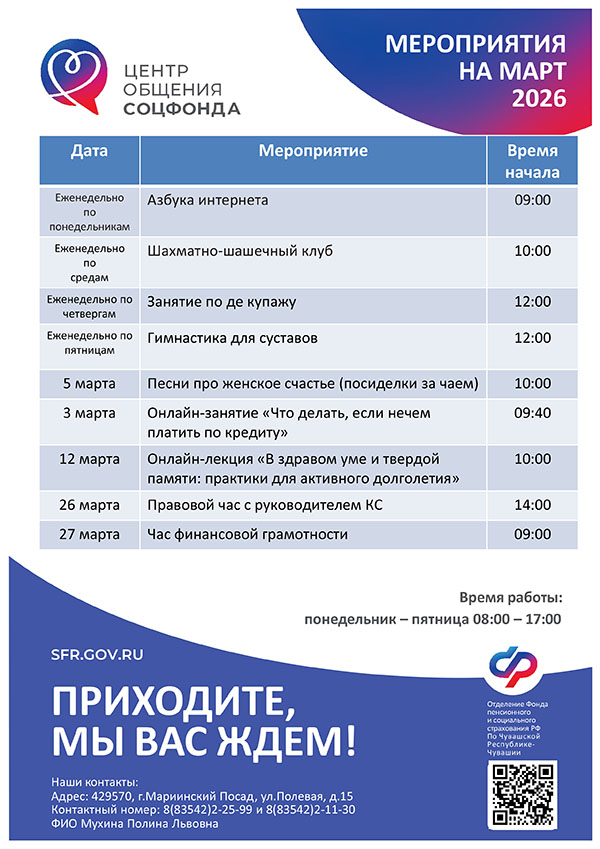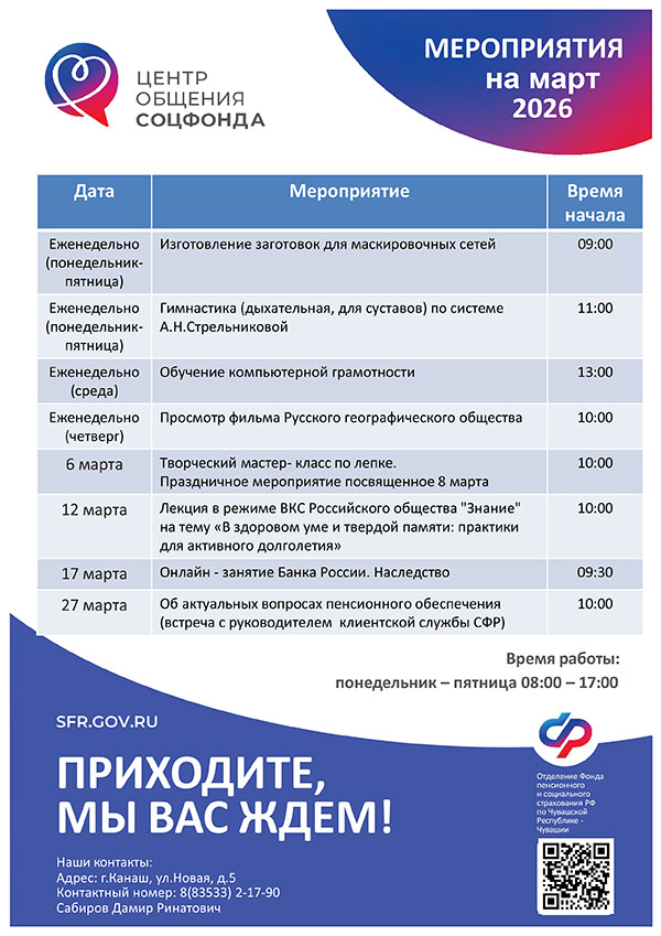 Афиша мероприятий Центров общения старшего поколения на МАРТ 2026 года