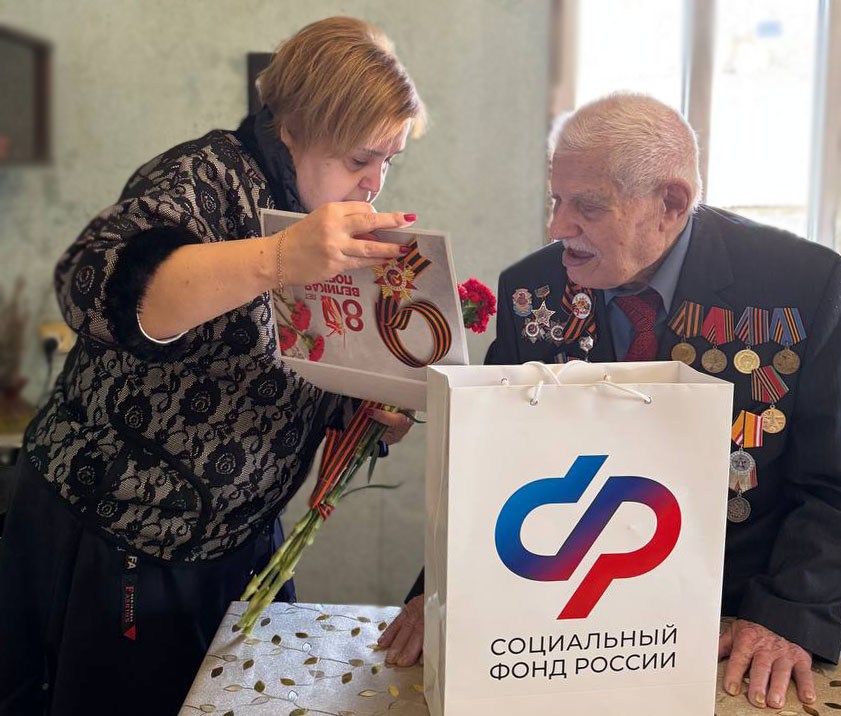 С 80-летием Победы в Великой Отечественной войне управляющий региональным Отделением Социального фонда России Галина Сагайдакова поздравила ветеранов боевых действий, тружеников тыла, узников концлагерей из Донецкой Народной Республики. Она вручила им поздравительные адреса от имени председателя СФР Сергея Чиркова, цветы и подарки.