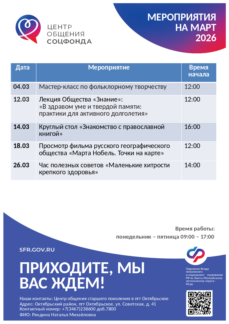 На базе Клиентской службы в пгт Октябрьское ОСФР по ХМАО-Югре работает Центр общения старшего поколения (ЦОСП)
