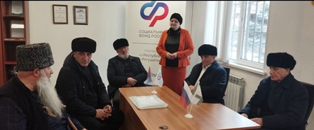 В завершение встречи заместителю руководителя клиентской службы Джейрахского района и г. Назрань Парчиевой Розе Аюповне было передано Благодарственное письмо от председателя «Союз Чернобыль» Республики Ингушетия за оказанную помощь и содействие участникам организации.