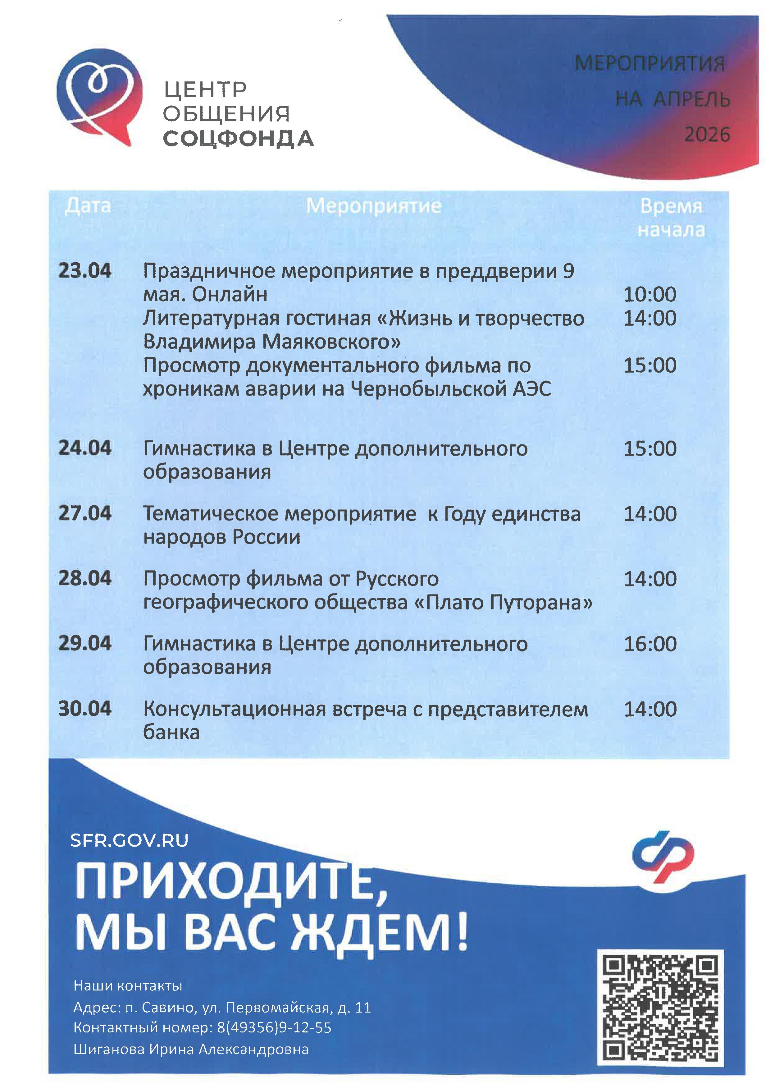 Центр общения старшего поколения в п. Савино