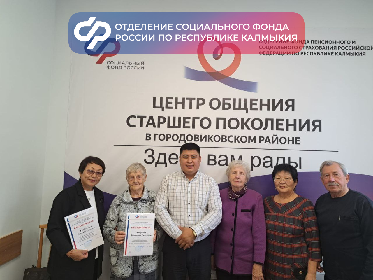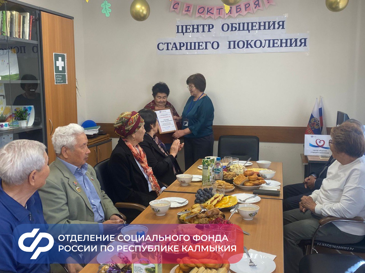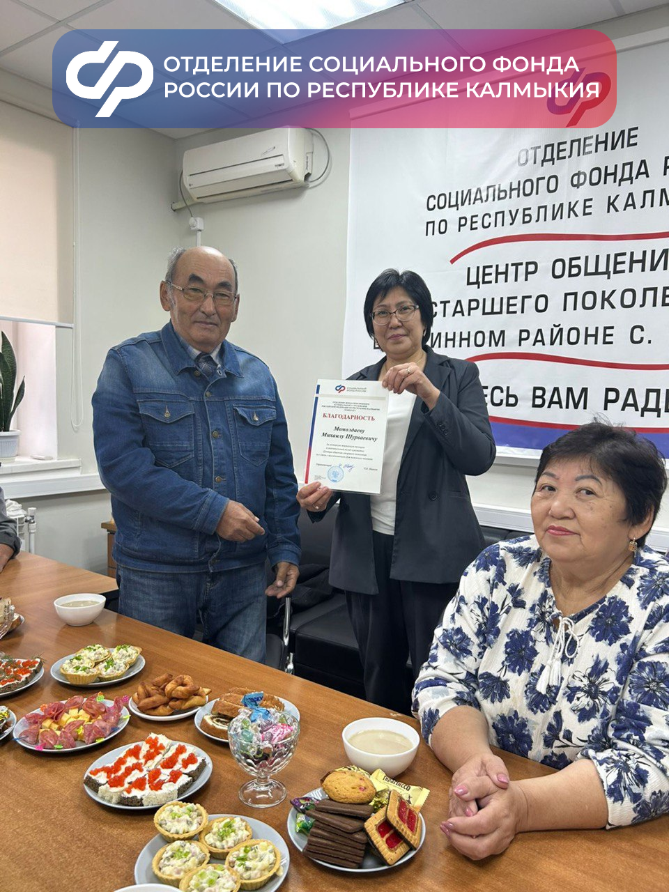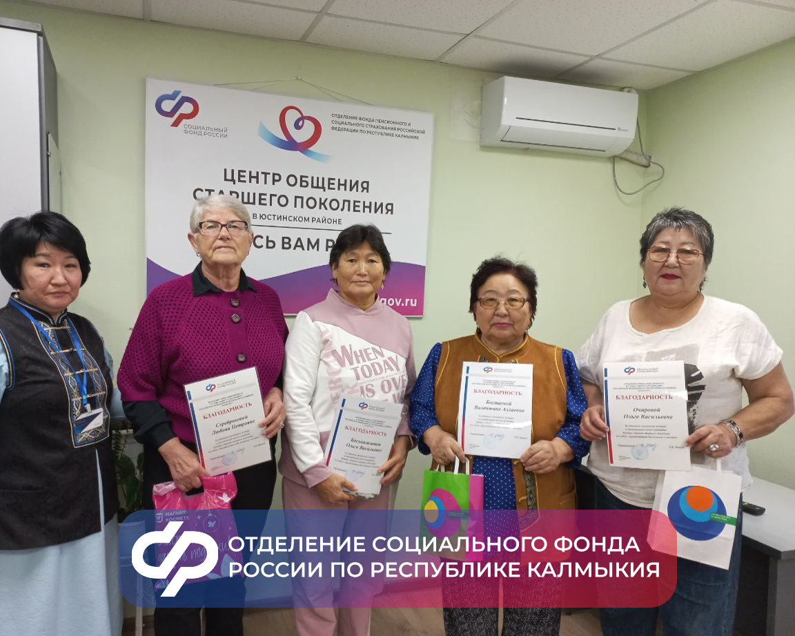 В этот же день в Центрах общения по всей республике самым активным представителям «серебряного» возраста вручили благодарственные письма от имени управляющего Отделением Социального фонда России по Республике Калмыкии Чингиза Иванова. В ходе мероприятий звучали искренние слова благодарности, пожелания добра и долголетия. Артисты творческих коллективов районных Домов культуры порадовали гостей песнями, романсами, шлягерами прошлых лет, подарив зрителям массу позитивного настроения и положительных эмоций.