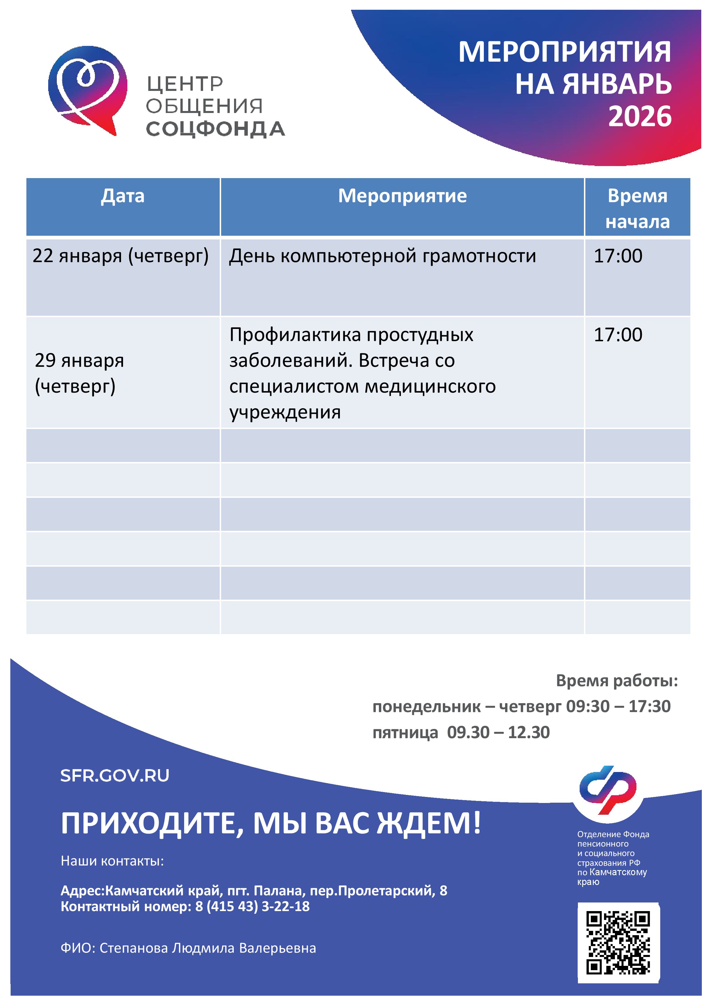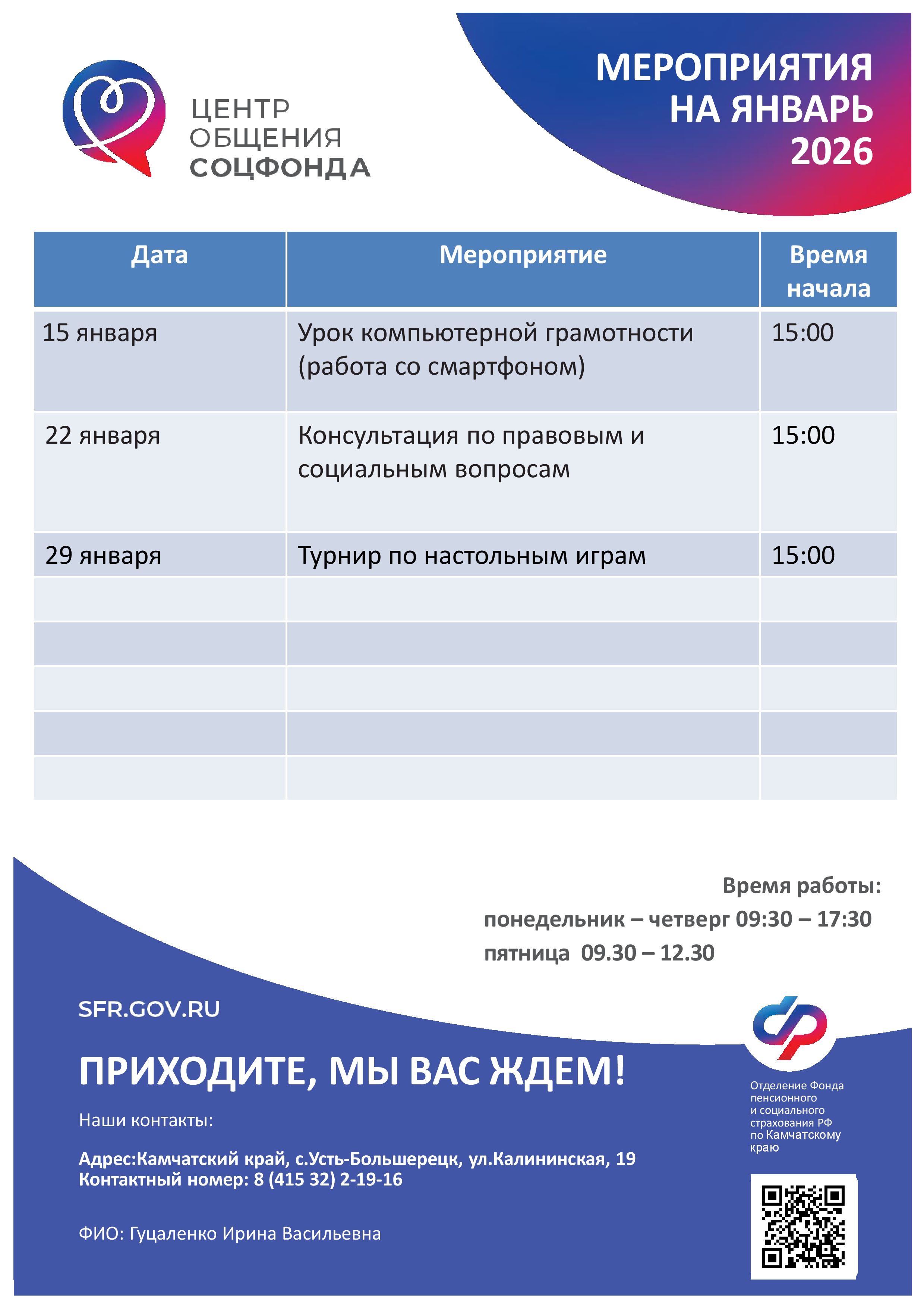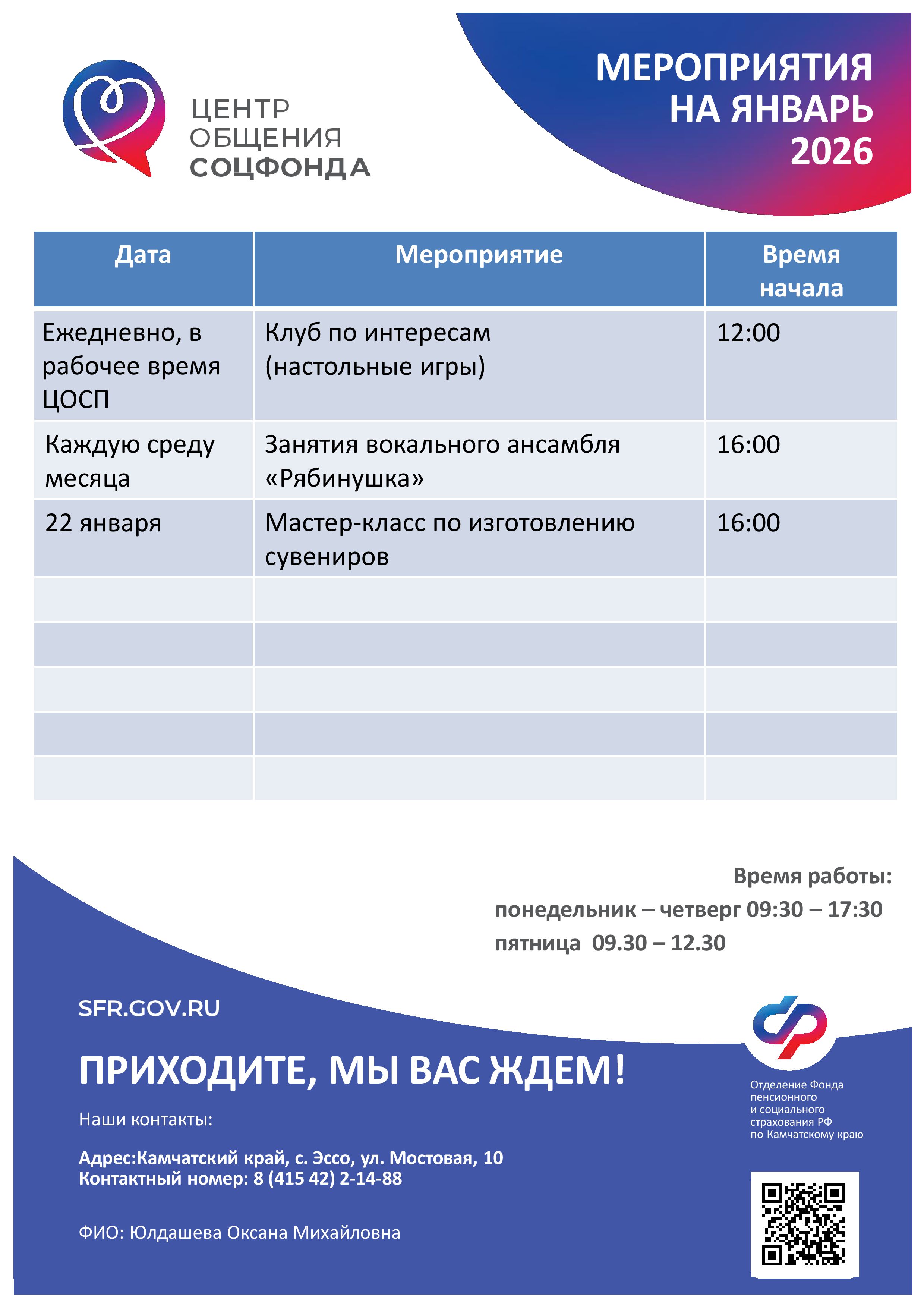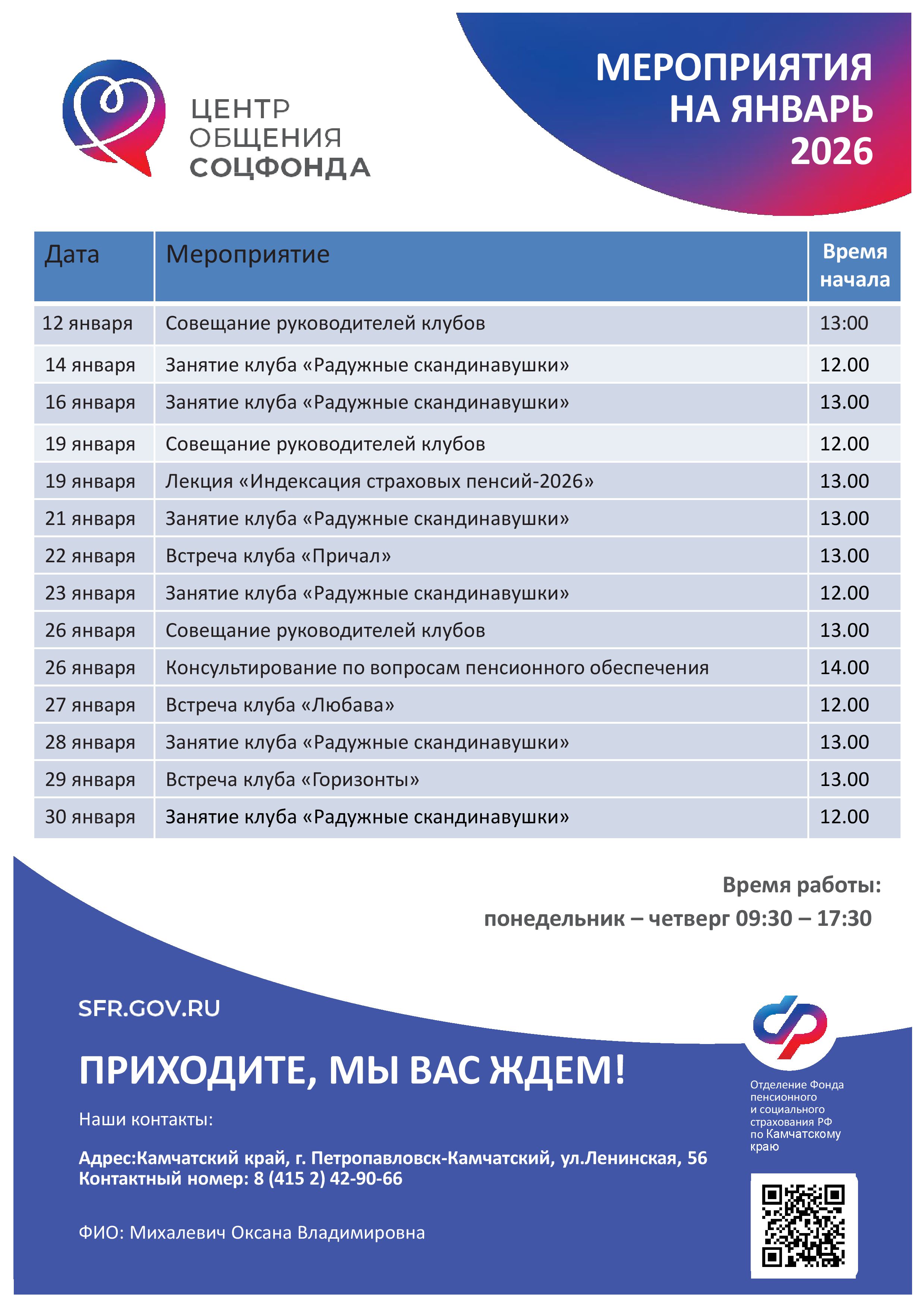 Планы работы Центров общения старшего поколения на январь 2026 года