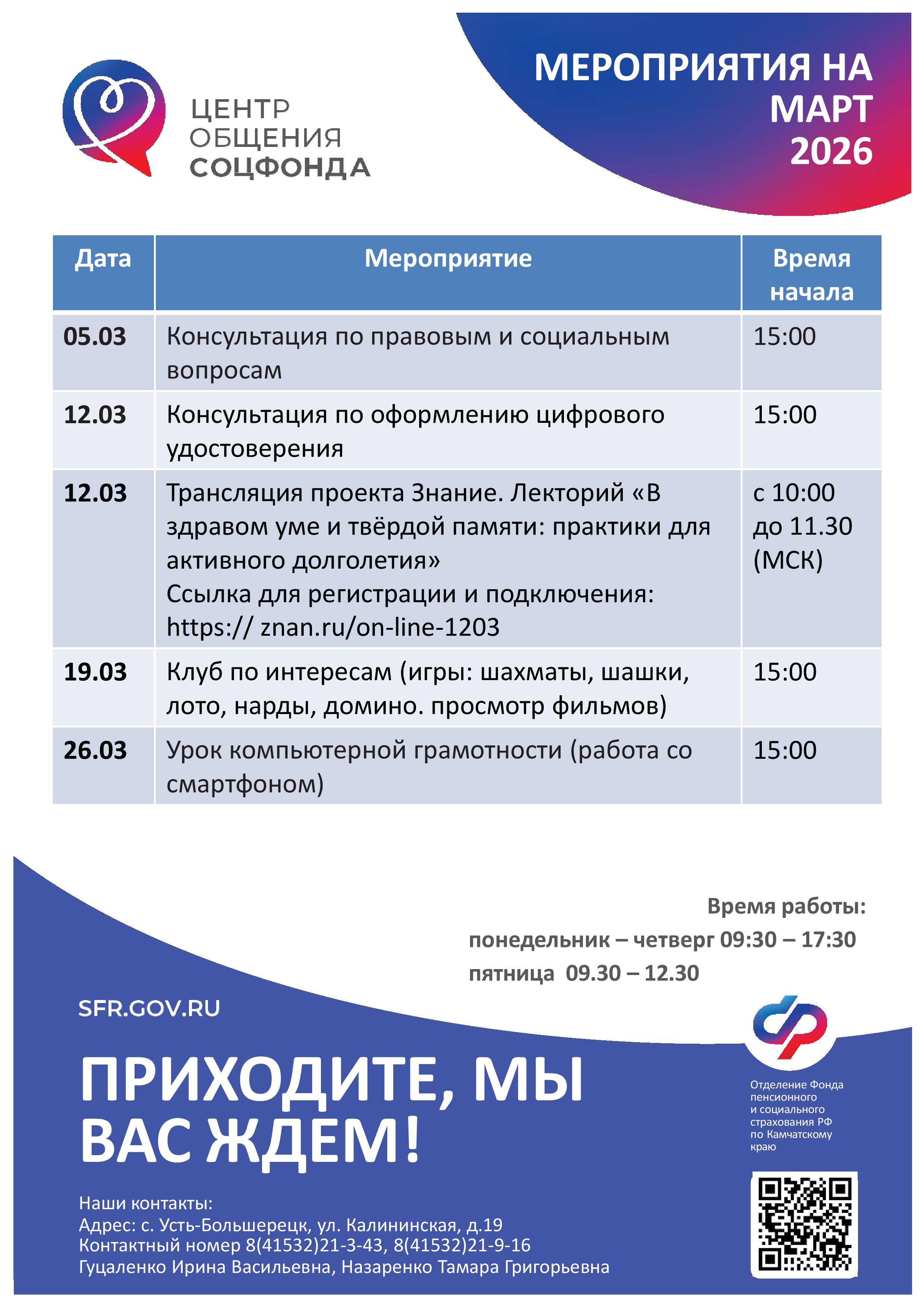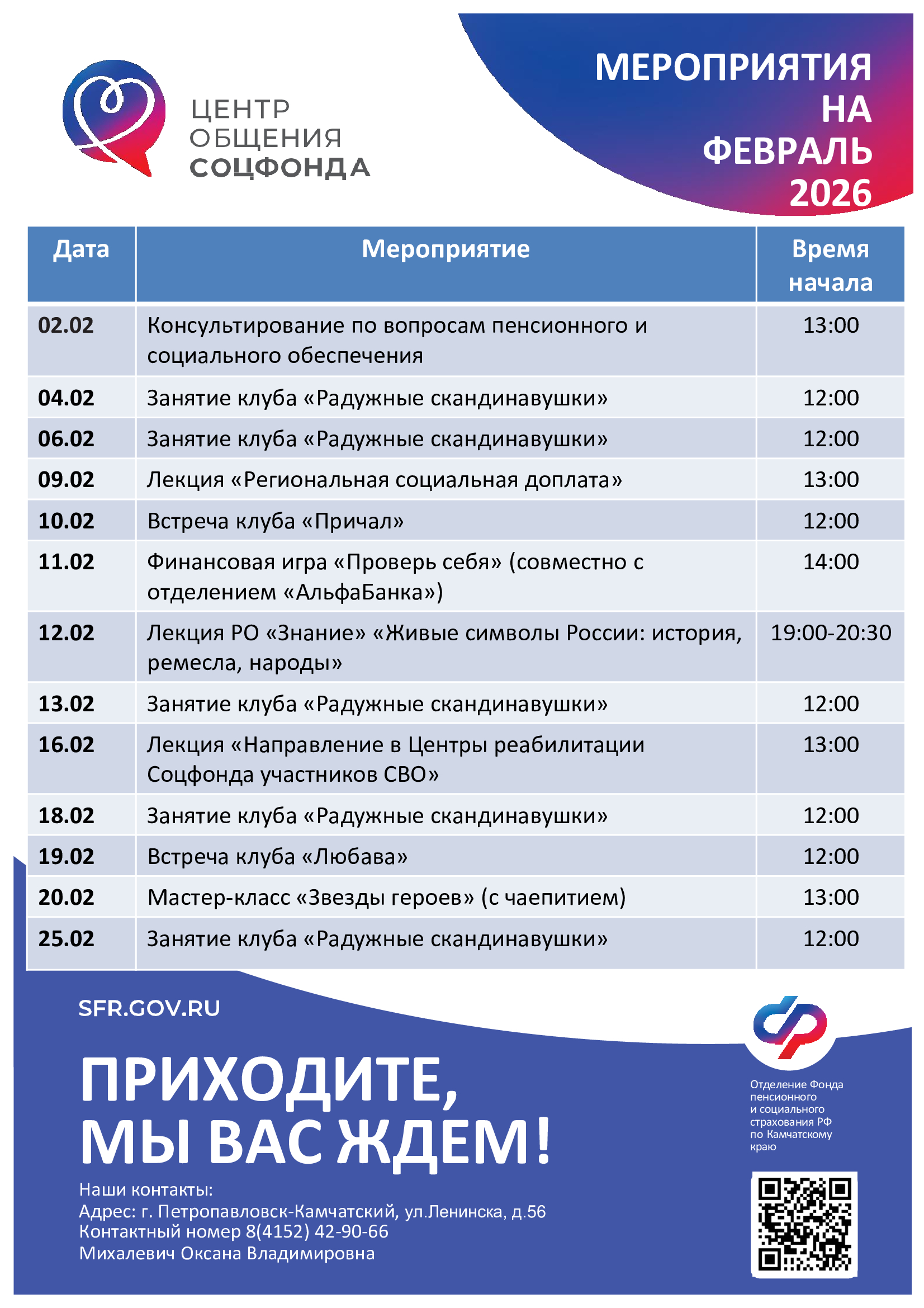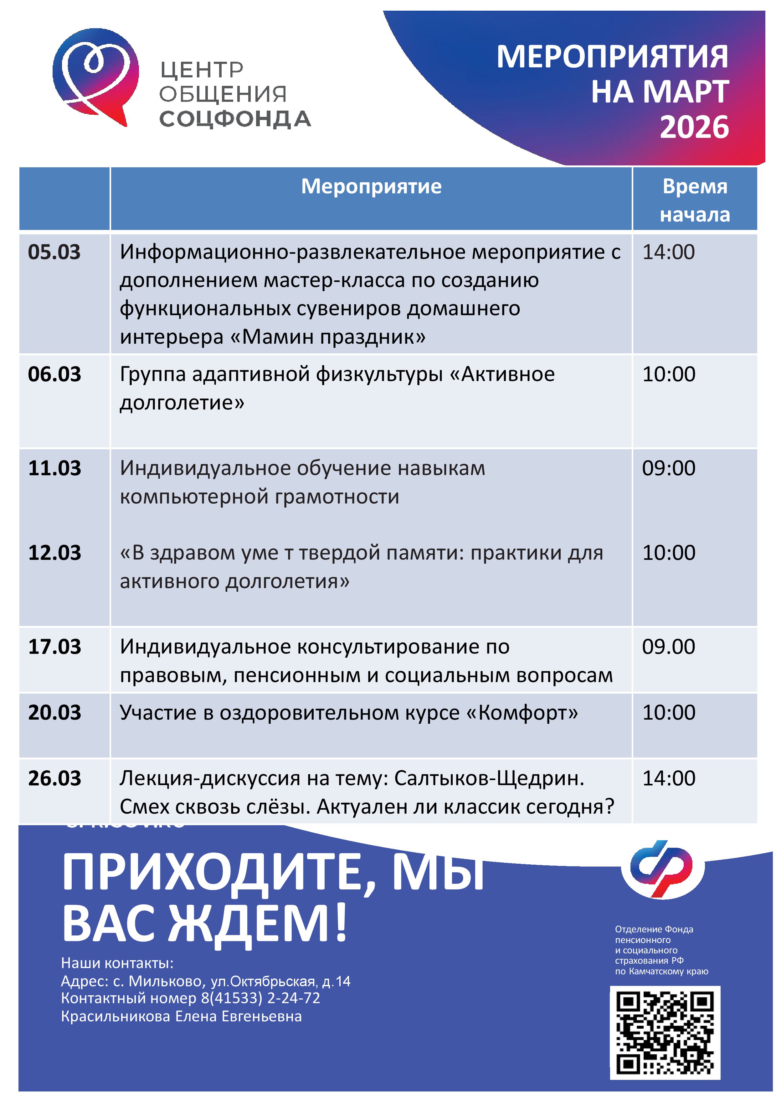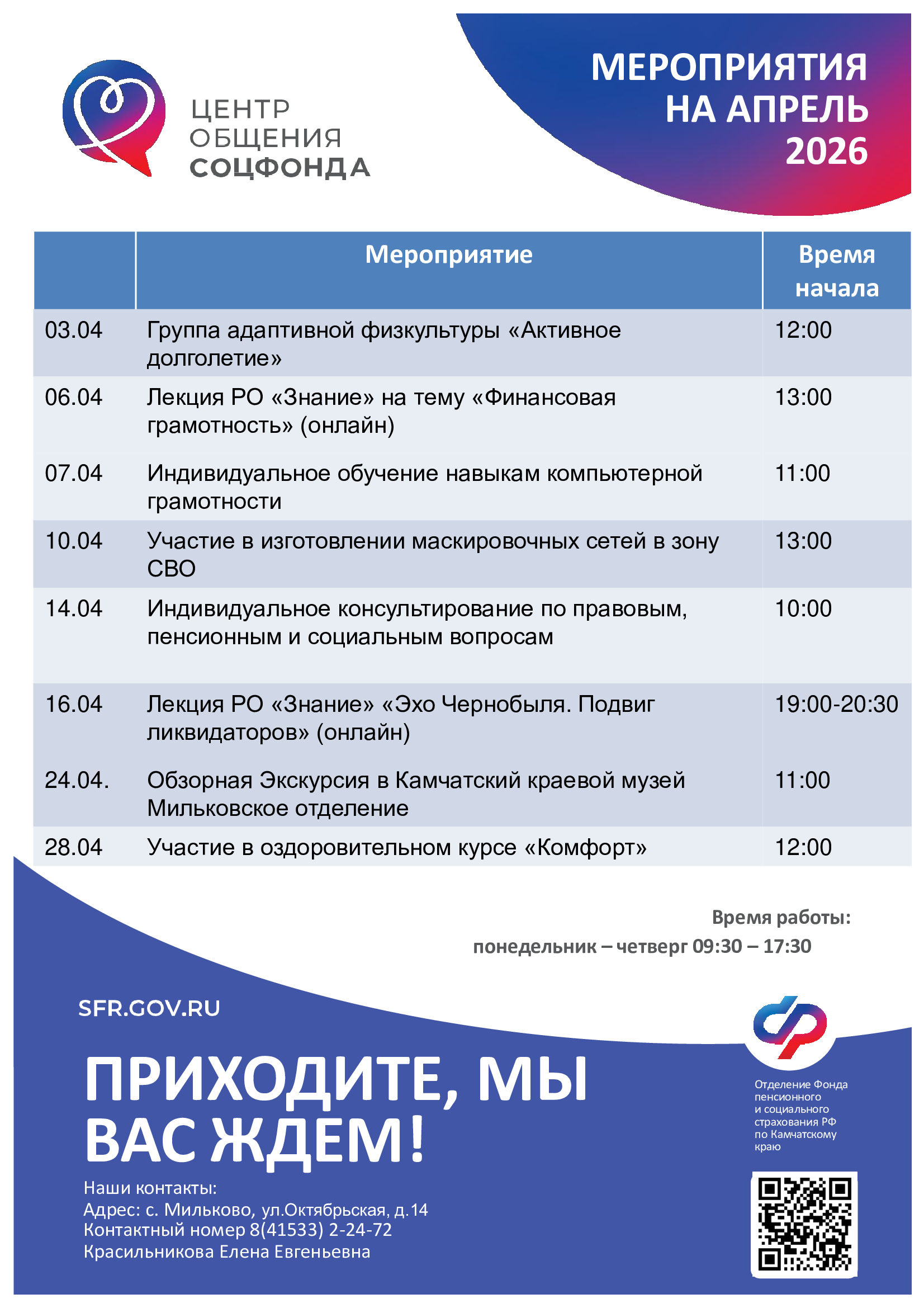 Лекция «Порядок предоставления санаторно-курортного лечения в Камчатском крае» (представители Отделения СФР по Камчатскому краю и Министерства социального благополучия и семейной политики Камчатского края) |
