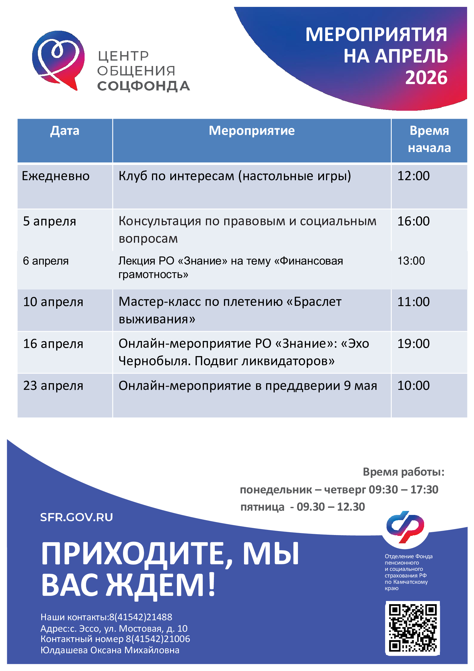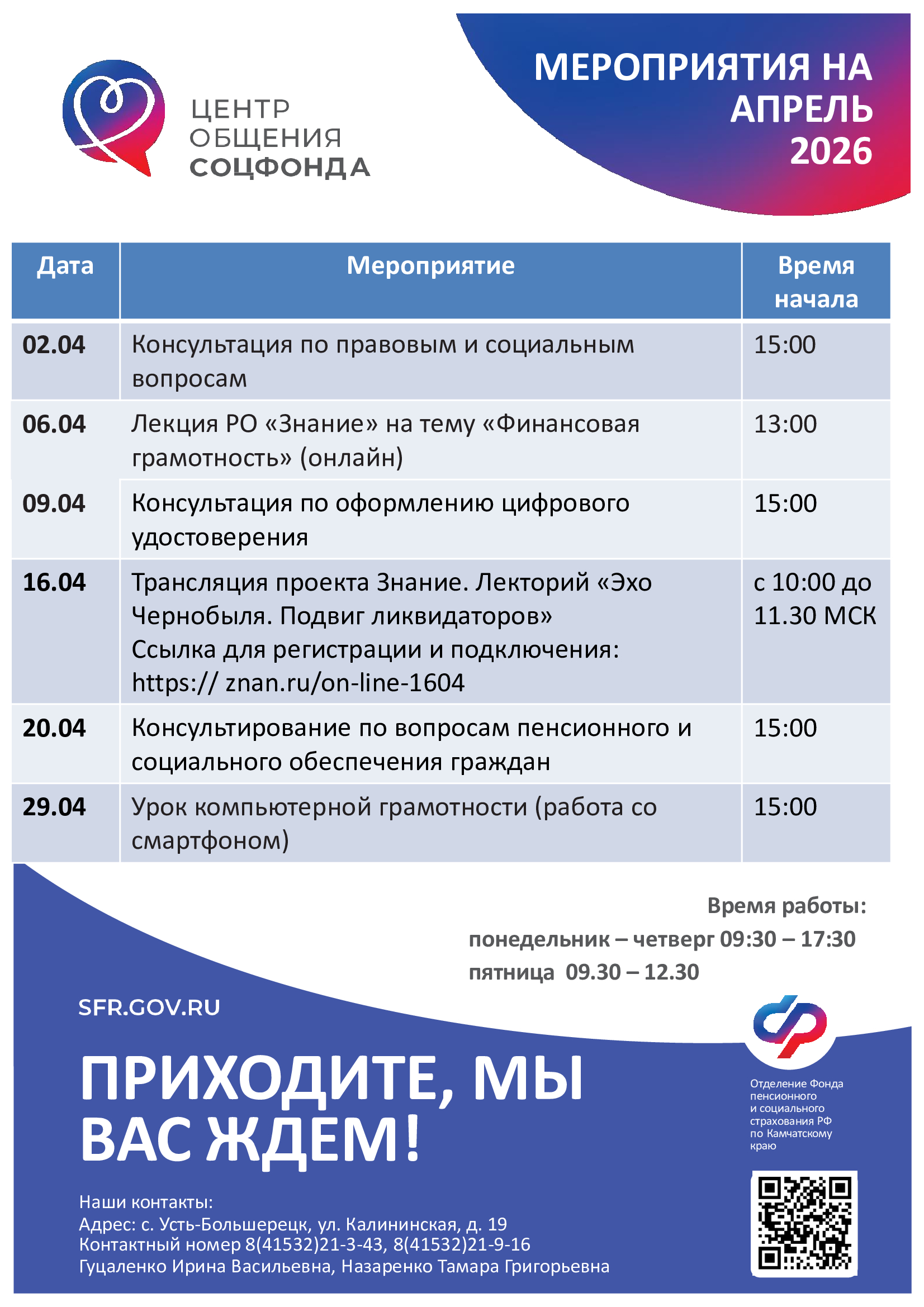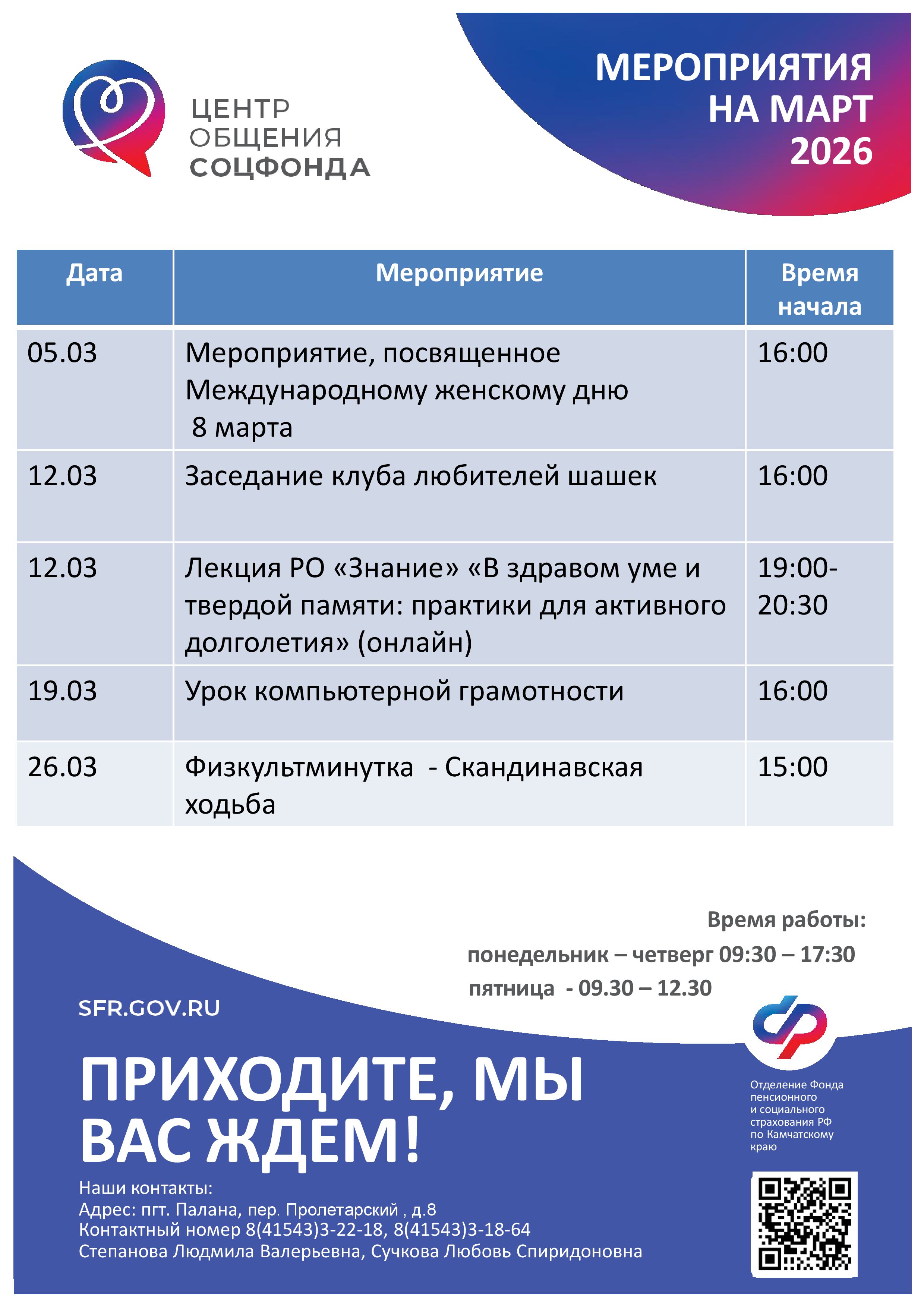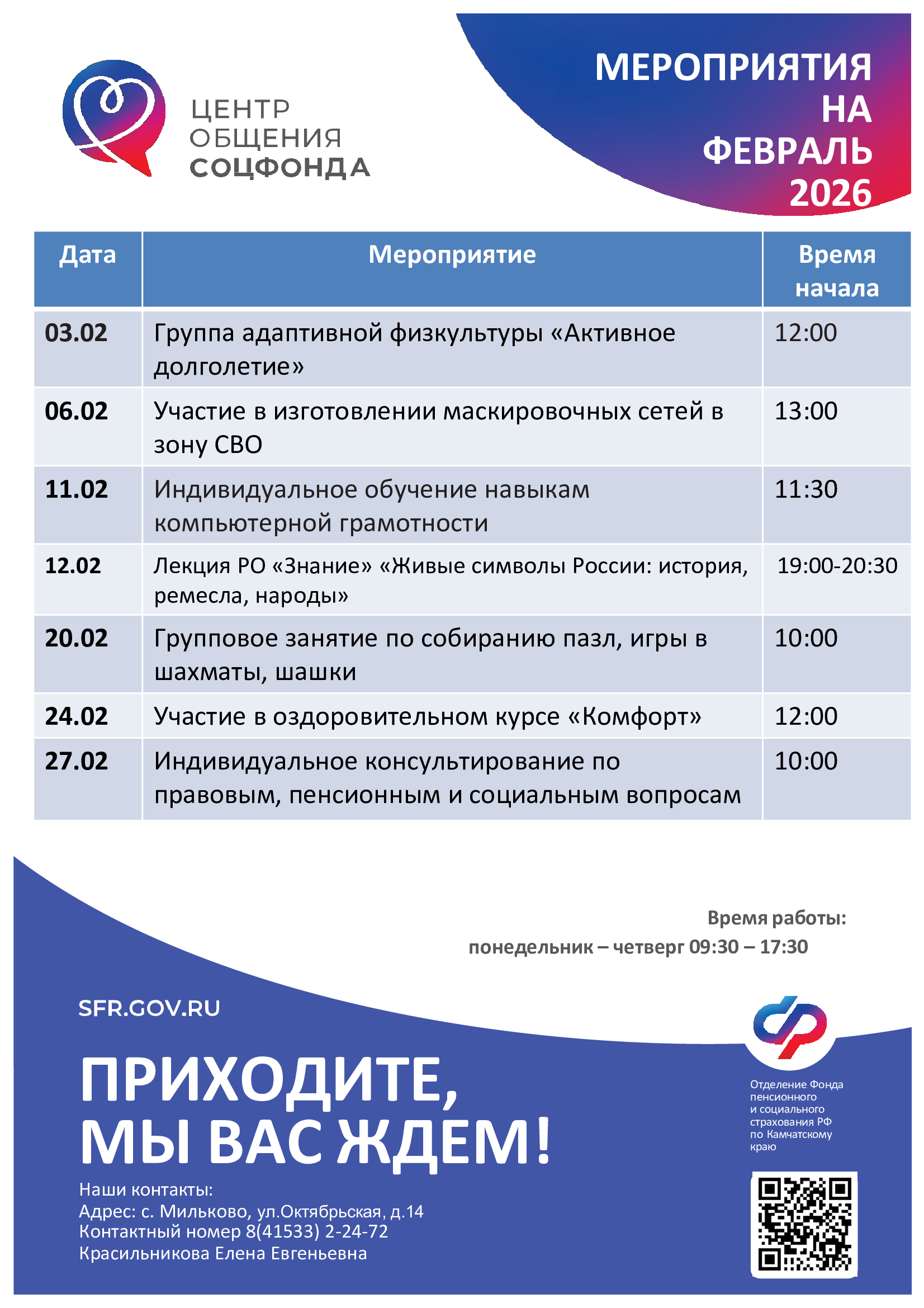 Лекция «Порядок предоставления санаторно-курортного лечения в Камчатском крае» (представители Отделения СФР по Камчатскому краю и Министерства социального благополучия и семейной политики Камчатского края) |