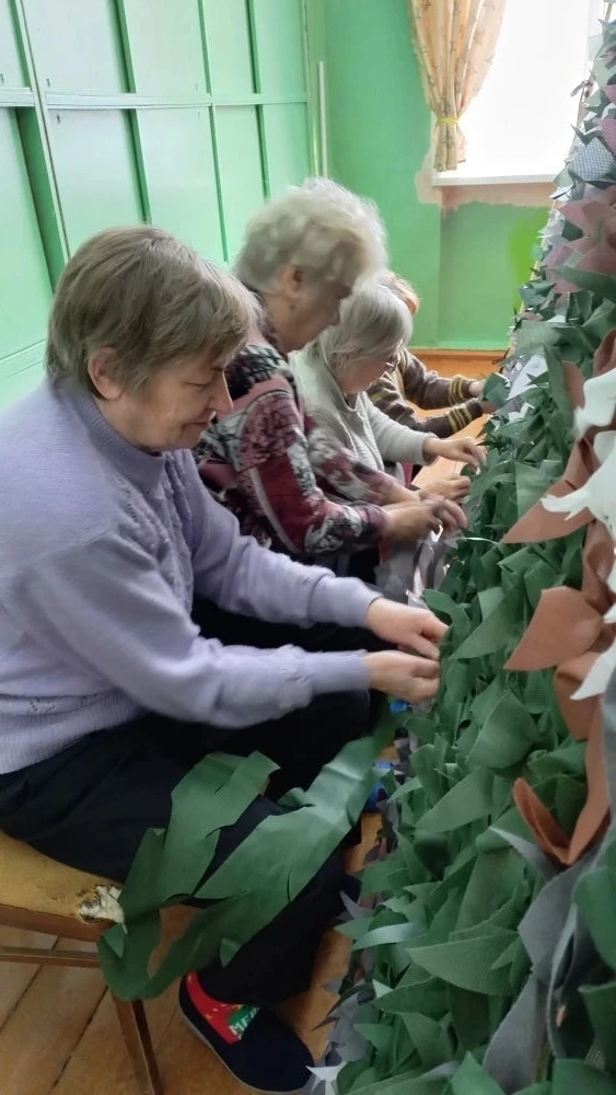 Вот и сегодня, надо помочь участникам СВО. Ветераны всегда готовы - вяжут маскировочные сети, носки, варежки, всё для общего дела, для Победы!