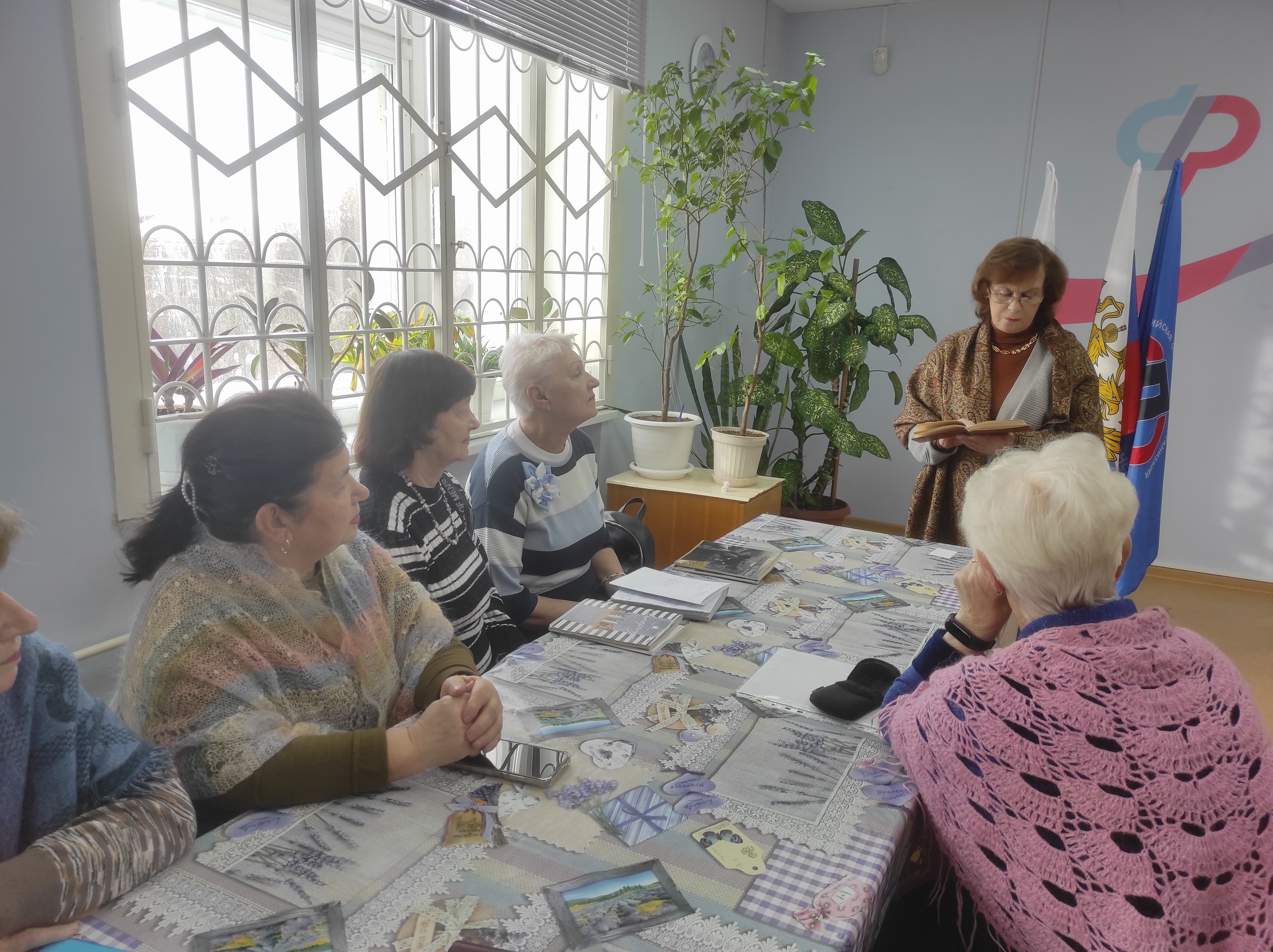 С душевной программой перед гостями выступила Цветкова Татьяна Анатольевна, сотрудник Дома культуры «Юность». Татьяна Анатольевна провела увлекательную викторину, которая позволила участникам не только проверить свои знания в области литературы, но и активно пообщаться, поделиться мыслями и получить заряд позитива.