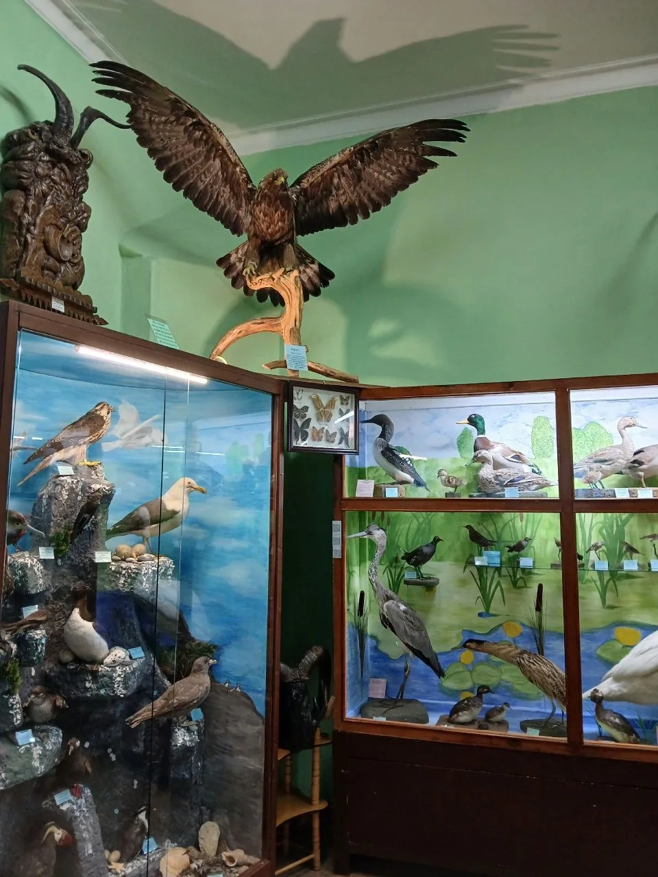 Экспозиция познакомила посетителей с разнообразием мира птиц, их ролью в природе и жизни человека. Гости с интересом рассматривали экспонаты, узнавали новые факты о перелётных и зимующих видах, а также обсудили важность бережного отношения к природе. Коллекция ежегодно пополняется и на сегодняшний день насчитывает 260 видов чучел птиц и животных (всего в коллекции 600 экспонатов).