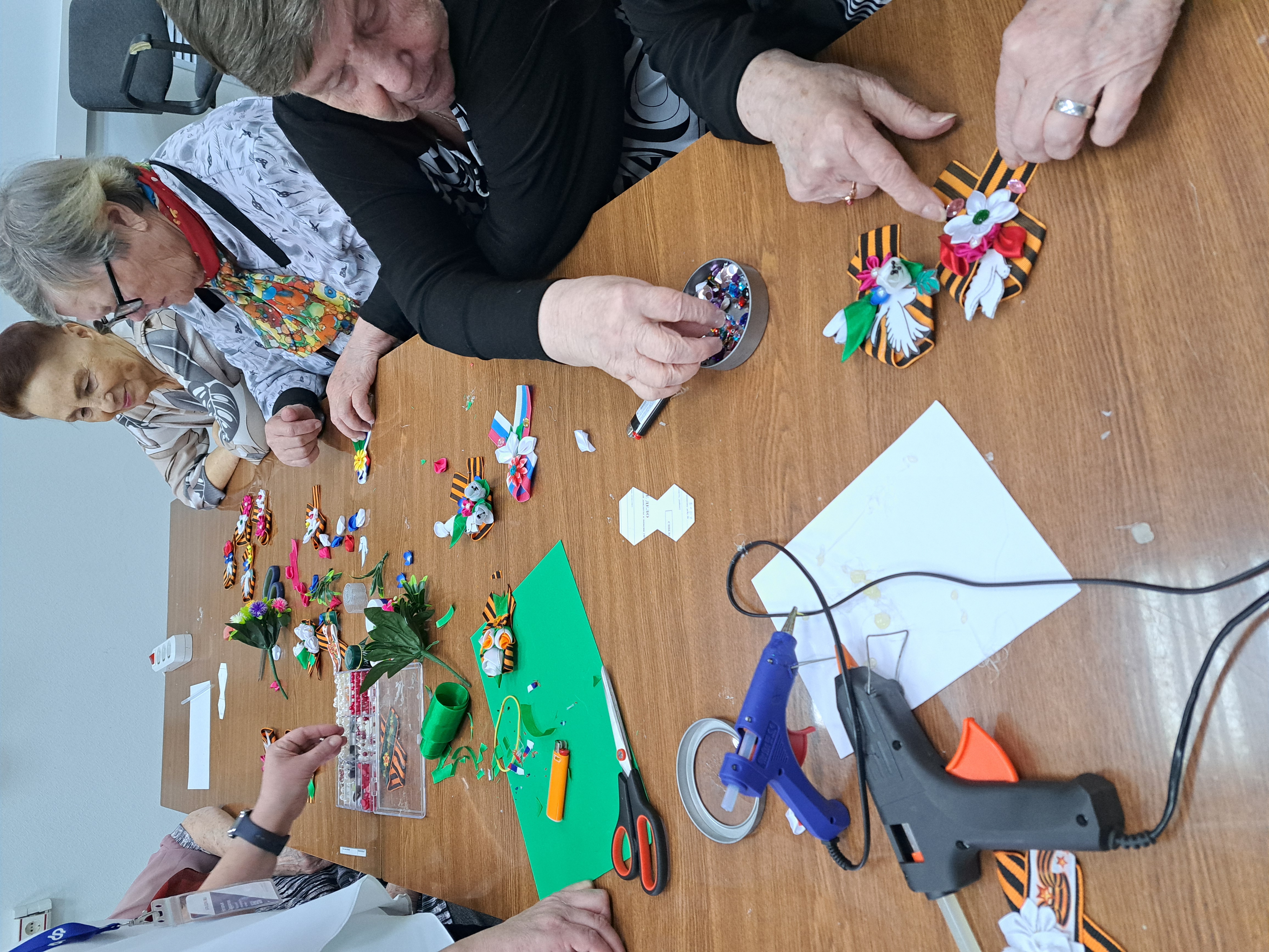 В нашем Центре прошло замечательное событие — мастер-класс по изготовлению броши в виде георгиевской ленточки. Участники с увлечением создавали красивые и нарядные броши, которые станут настоящим украшением наших активистов на празднике Дня Победы 9 мая.