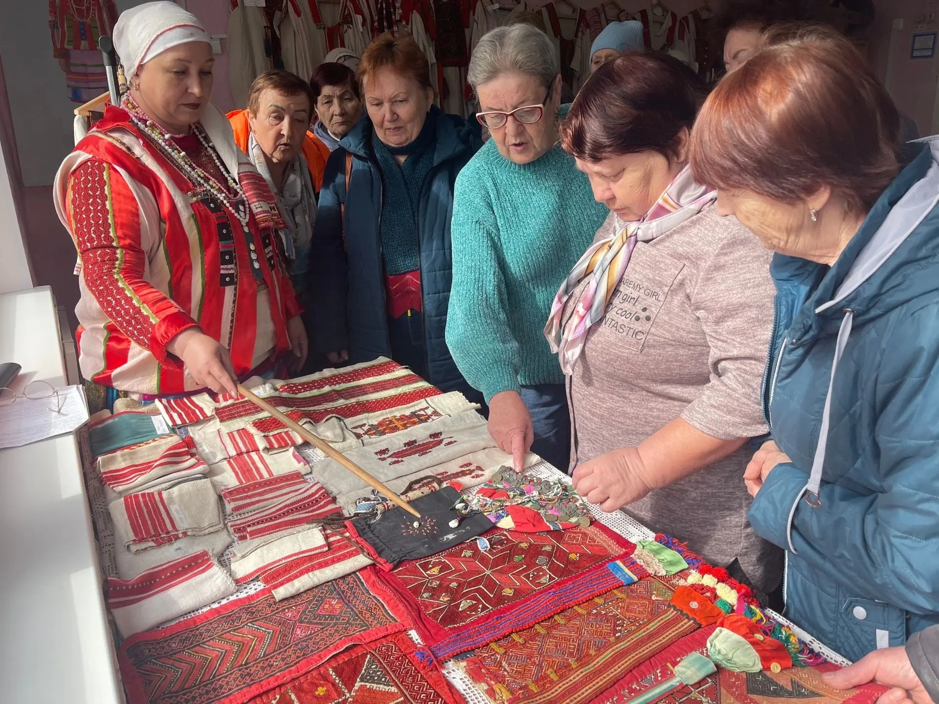Особую атмосферу мероприятию придала живая связь цветастых платков с красотой природы – цветущими садами и лугами. Эта гармония делает их поистине вневременным модным элементом, актуальным и сегодня. Активисты Центра общения с энтузиазмом продемонстрировали свои собственные платочные сокровища, поделившись историями их происхождения и сохранения.