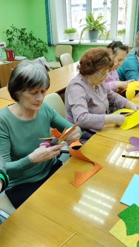 В этот же день педагог центра внешкольной работы, Шулакова Галина Аркадьевна, провела мастер-класс по созданию символа масленицы из цветной бумаги. Все присутствующие с желанием увлеклись созданием поделки, рассказывая при этом шутки-прибаутки. По окончании занятия сделали фото на память, а поделки забрали с собой, чтобы повторить с внуками.