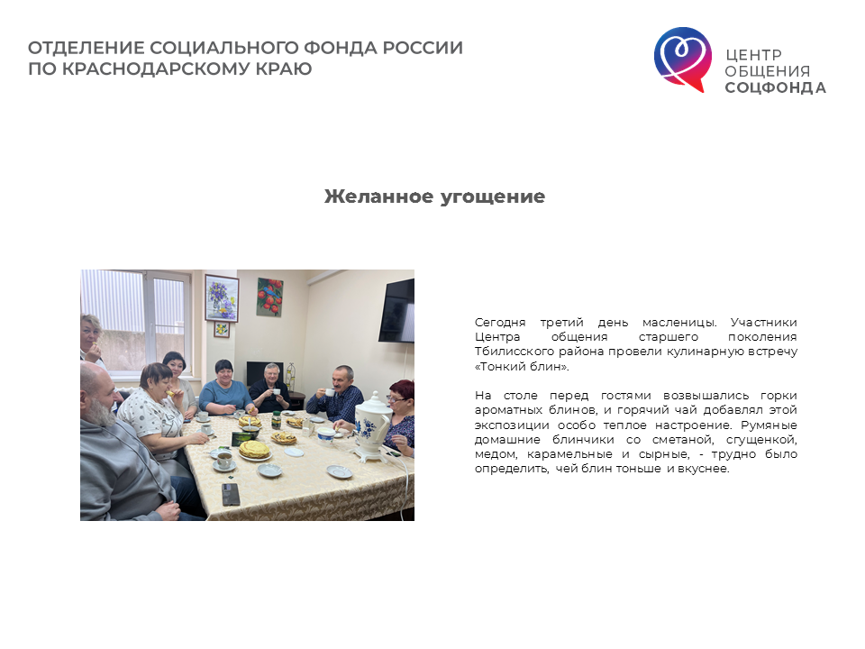 На базе клиентской службы в Тбиллиском районе ОСФР по Краснодарскому краю работает Центр общения старшего поколения (ЦОСП).