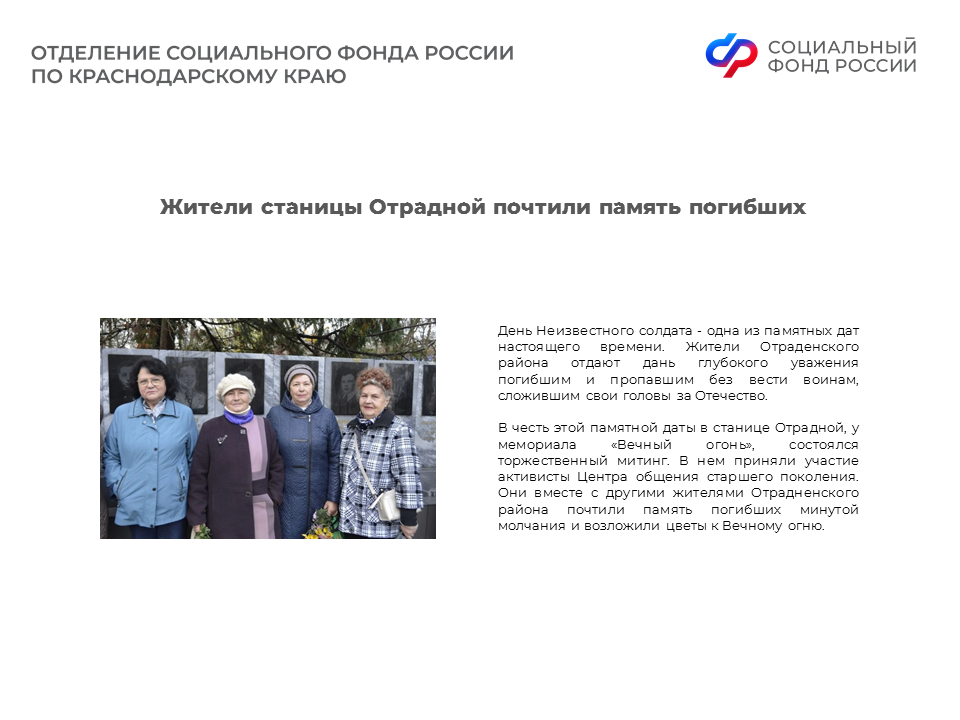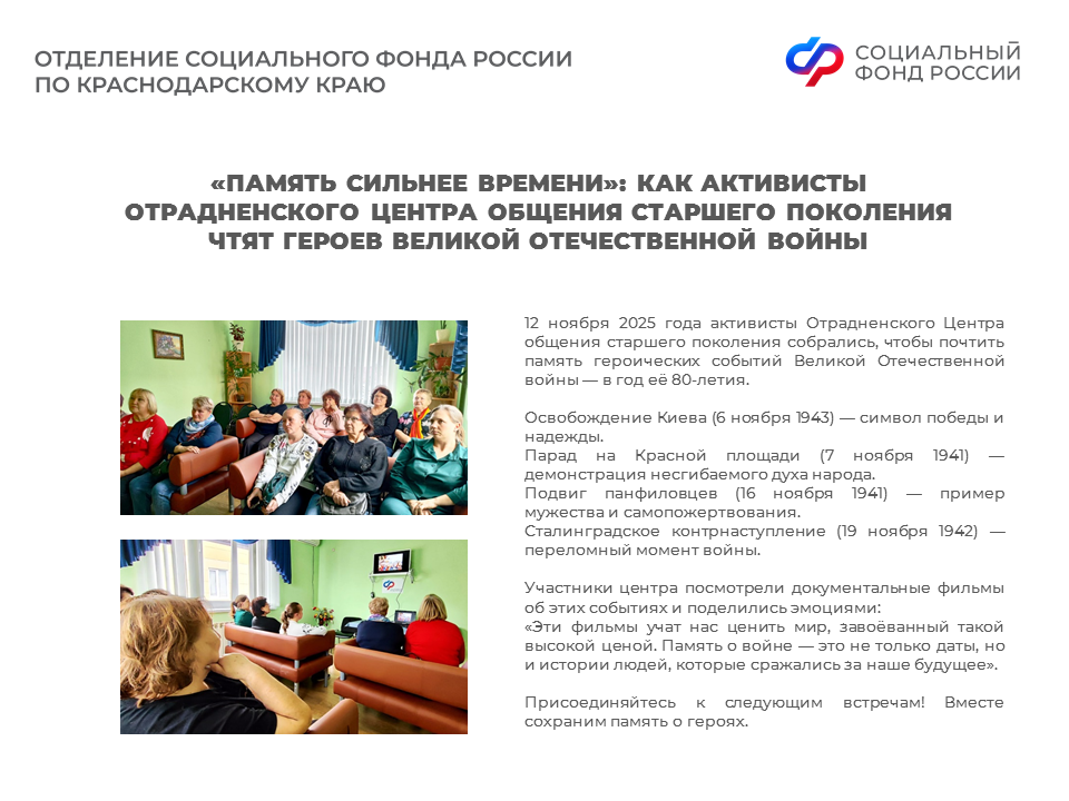 На базе клиентской службы в Отрадненском районе ОСФР по Краснодарскому краю работает Центр общения старшего поколения (ЦОСП).