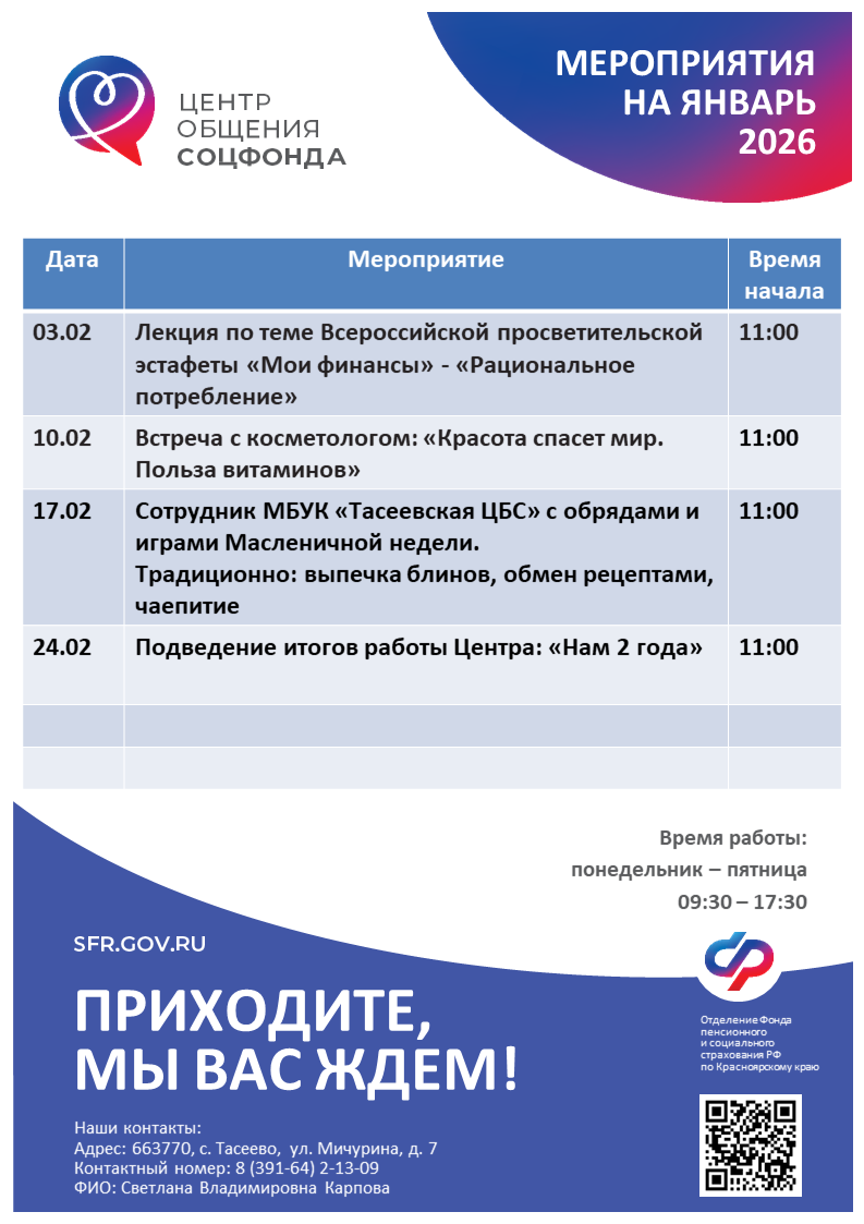 Центр общения старшего поколения в клиентской службе в Тасеевском районе (с. Тасеево)