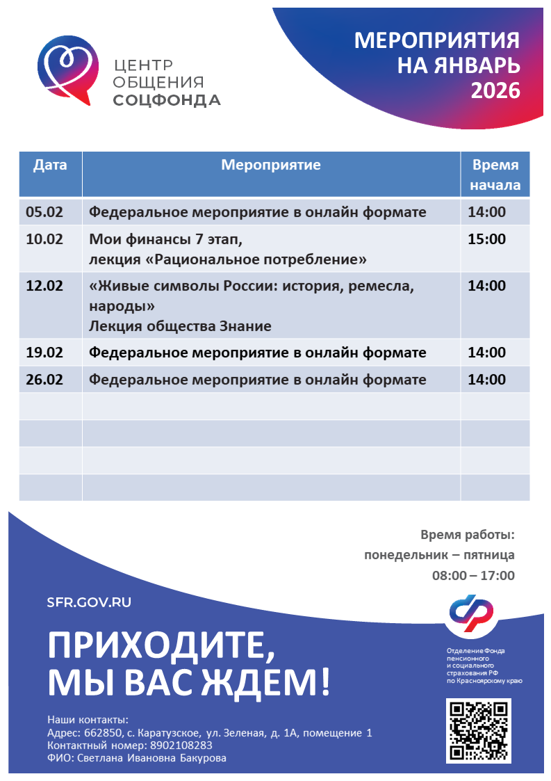 Адрес клиентской службы: 662850, с. Каратузское, ул. Зеленая 1А, помещение 1