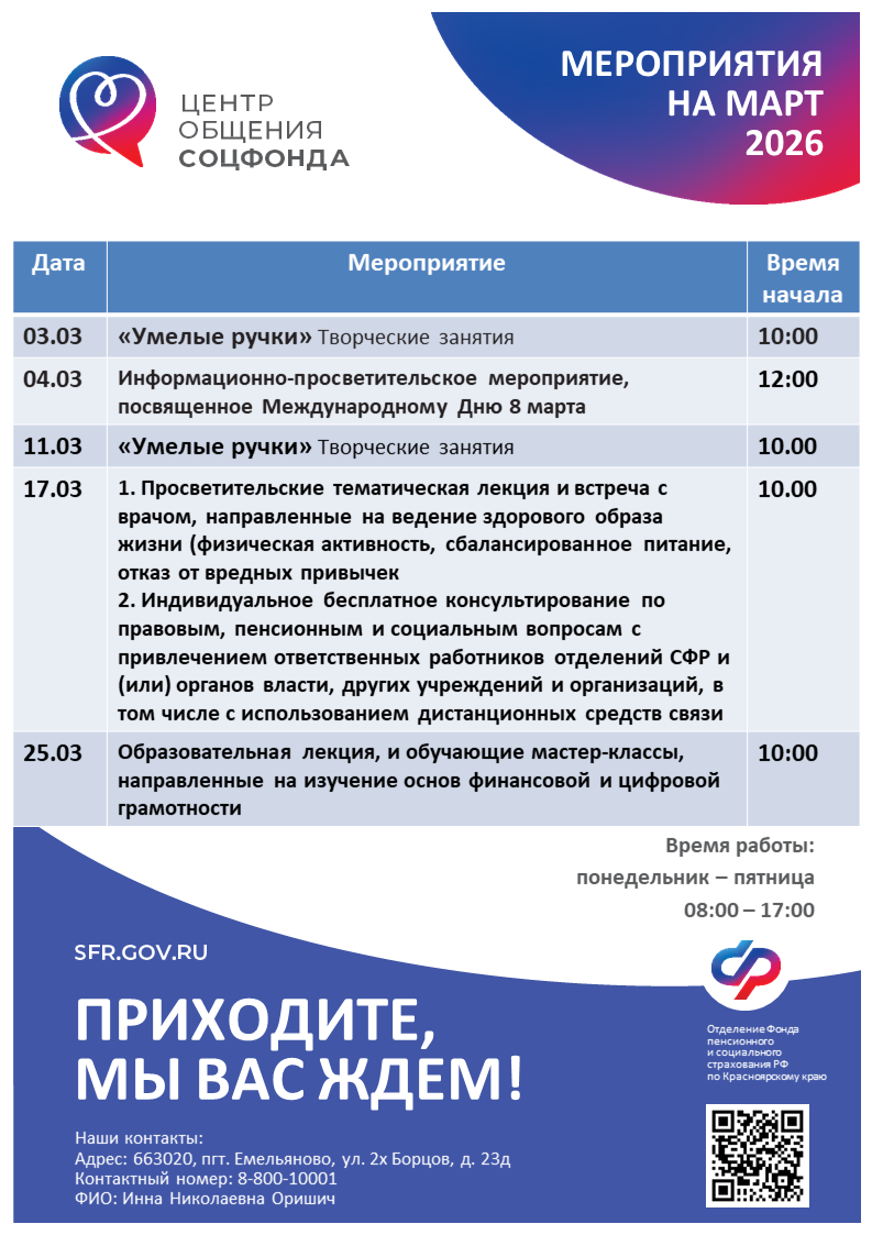 Центр общения старшего поколения в клиентской службе Емельяновского района (пгт. Емельяново)