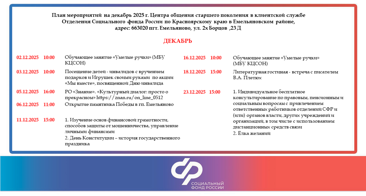 План мероприятий: Декабрь 2025 (Скачать)