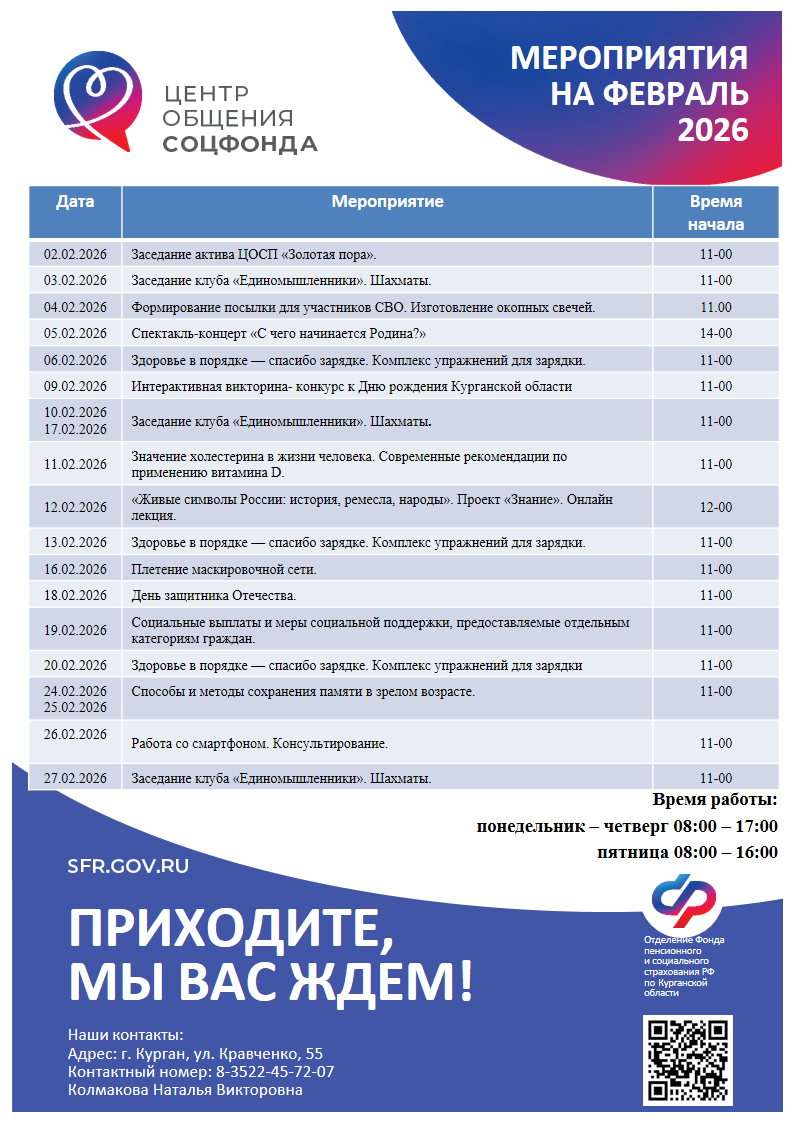 АФИША МЕРОПРИЯТИЙ НА ФЕВРАЛЬ 2026 ГОДА