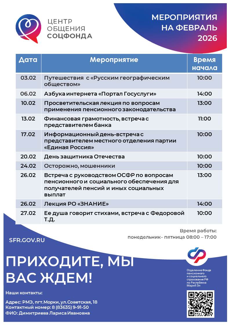 План мероприятий «Центра общения старшего поколения» в 2026 году (пгт. Морки):