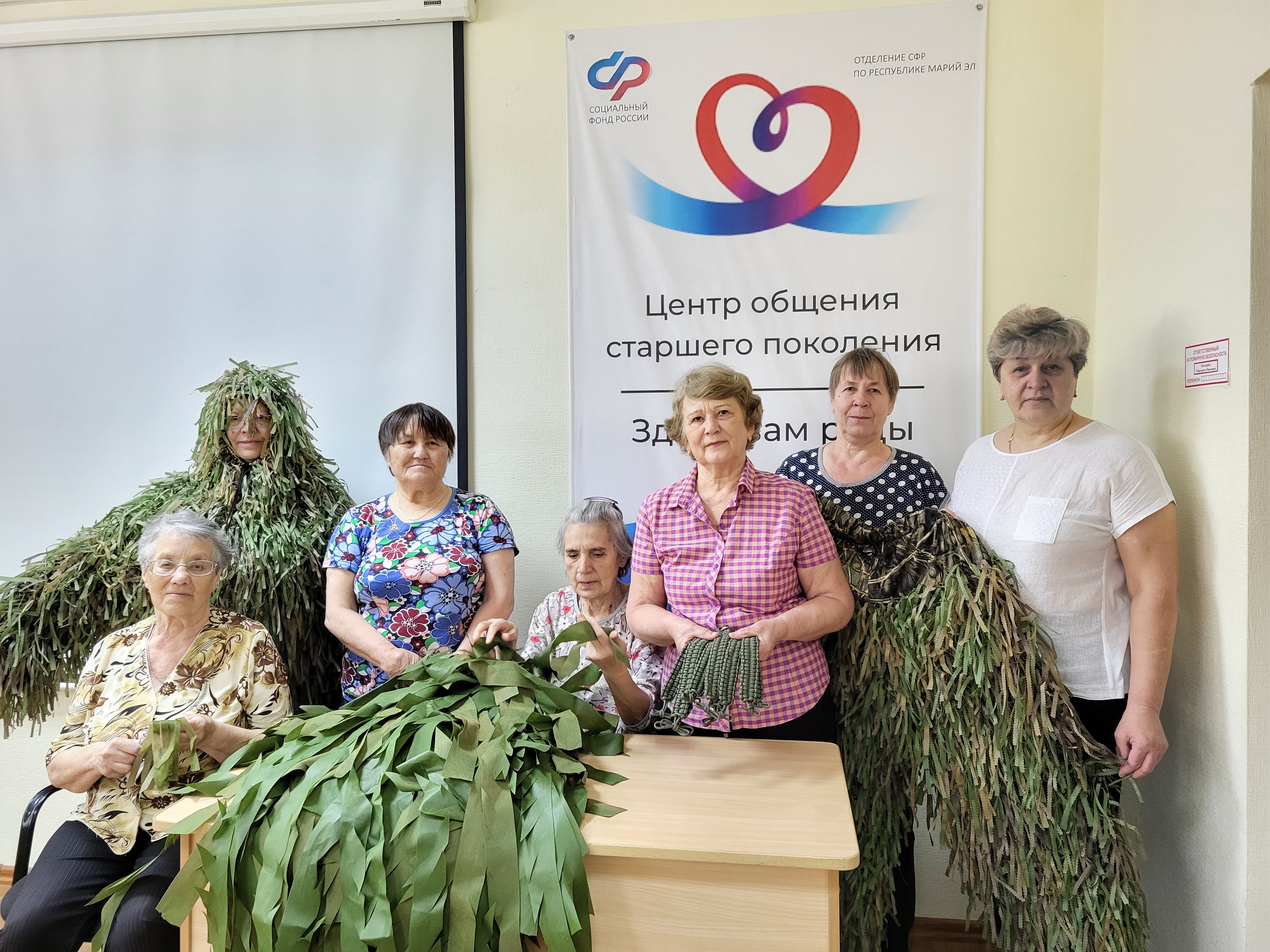 Активисты Центров общения старшего поколения, открытых на базе клиентских служб Отделения СФР по Республике Марий Эл, оказывают поддержку землякам, которые находятся на СВО. Они плетут сети, тактические браслеты выживания, делают носилки, изготавливают маскировочные костюмы и нашлемники.