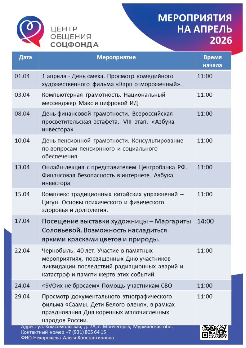 Афиша мероприятий на апрель 2026 года