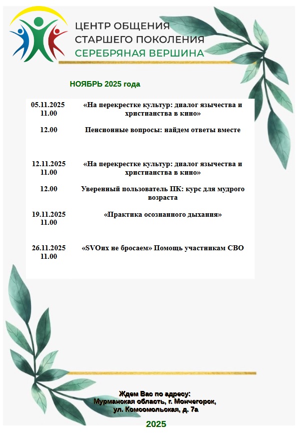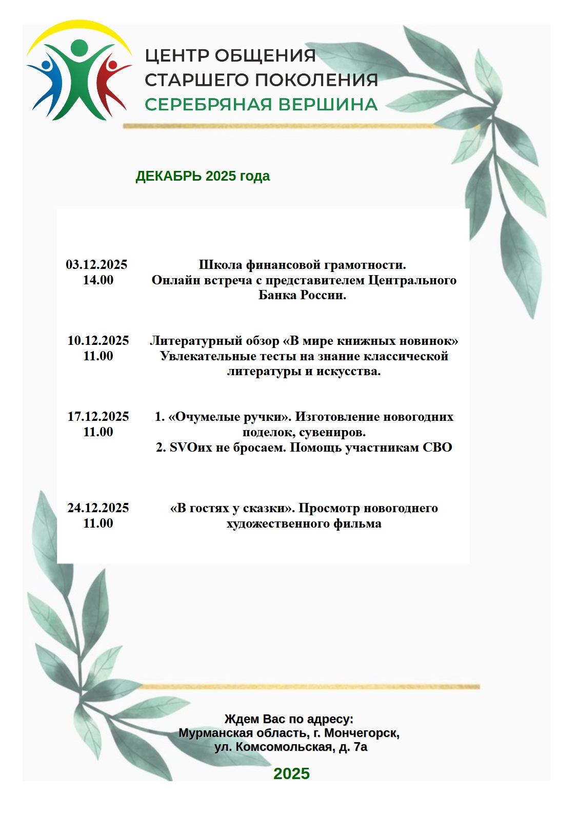 Центр общения старшего поколения "Серебряная вершина" в г. Мончегорск