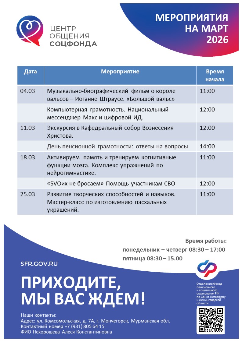 Афиша мероприятий на март 2026 года