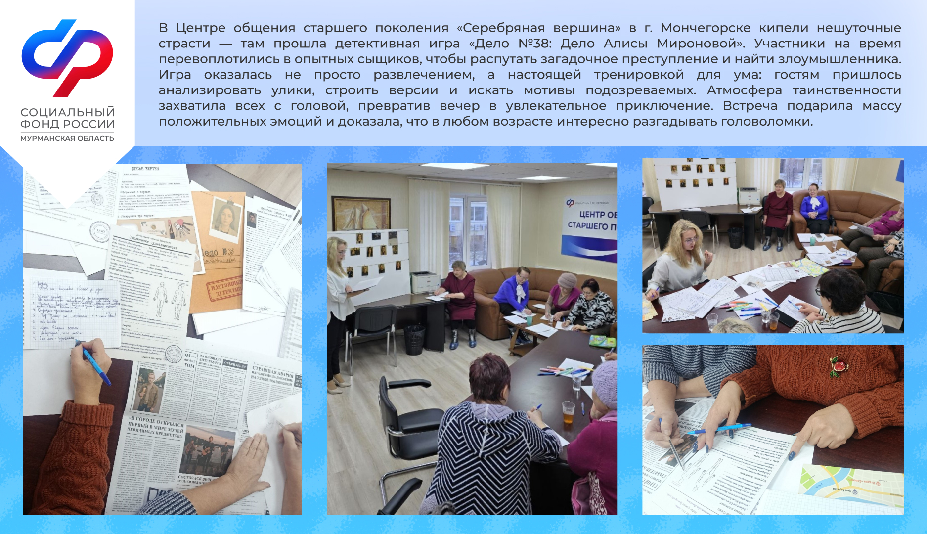 В феврале в ЦОСП "Серебряная вершина" провели детективную игру для посетителей