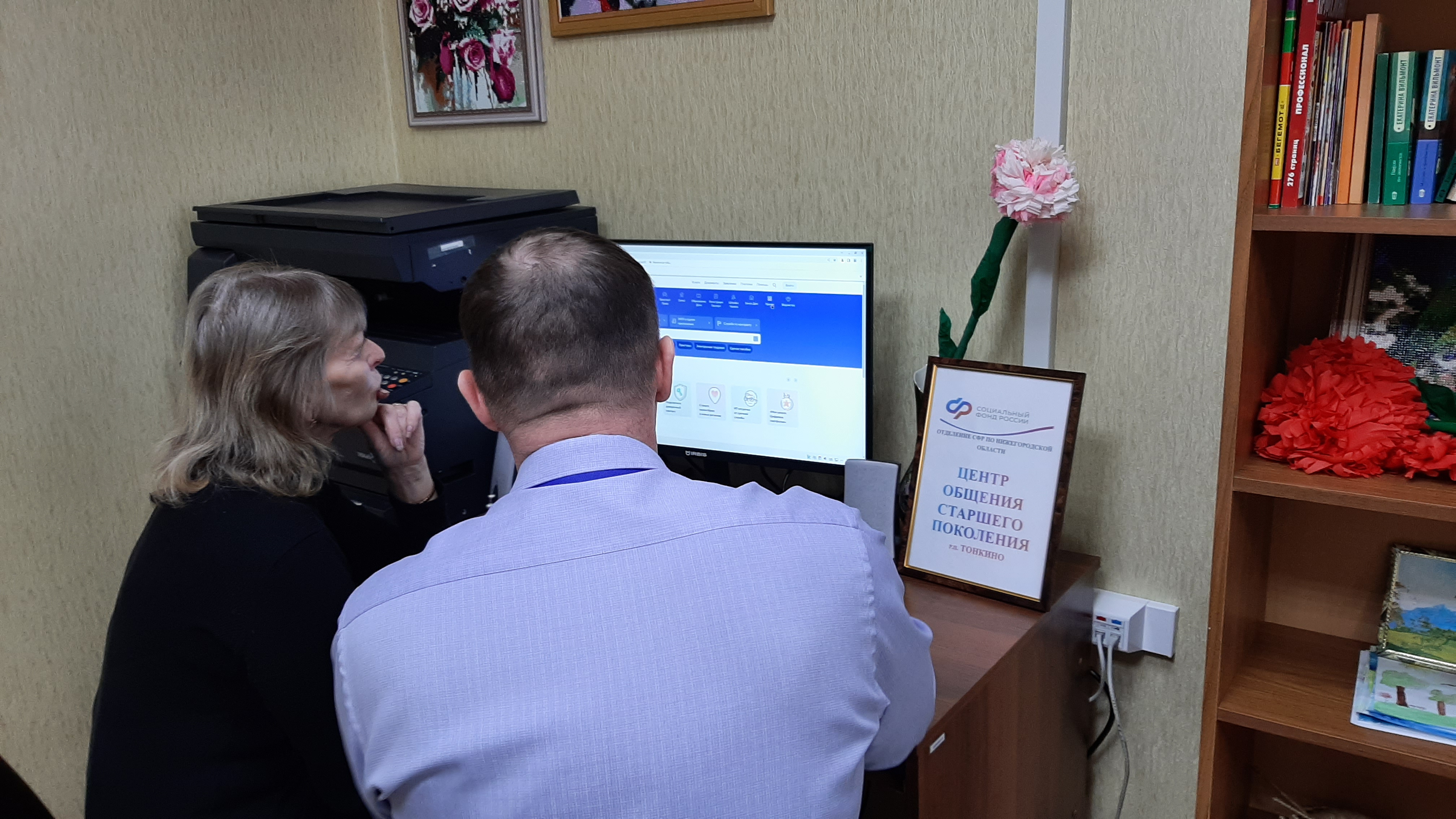 Центр общения старшего поколения был открыт в апреле 2025 года на базе клиентской службы Отделения Социального фонда России в р.п. Тонкино.