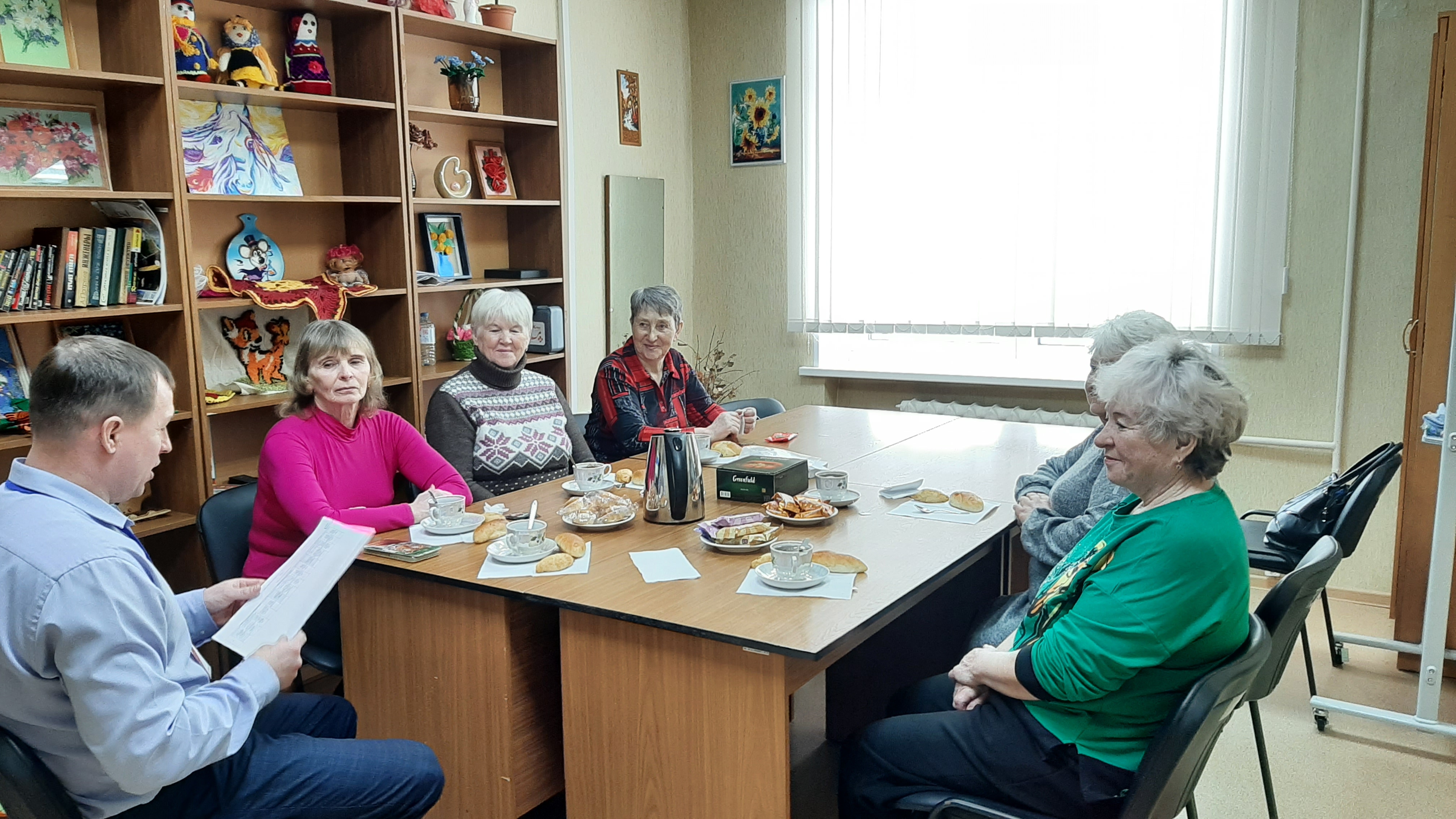 В спортивном уголке есть инвентарь для поддержания здоровья и физической бодрости пенсионеров, в библиотеке – свежая пресса и тематические подборки для проведения регулярных заседаний книжного клуба и, самое главное, - доброжелательная и теплая атмосфера для уютного общения с единомышленниками за чашкой чая.