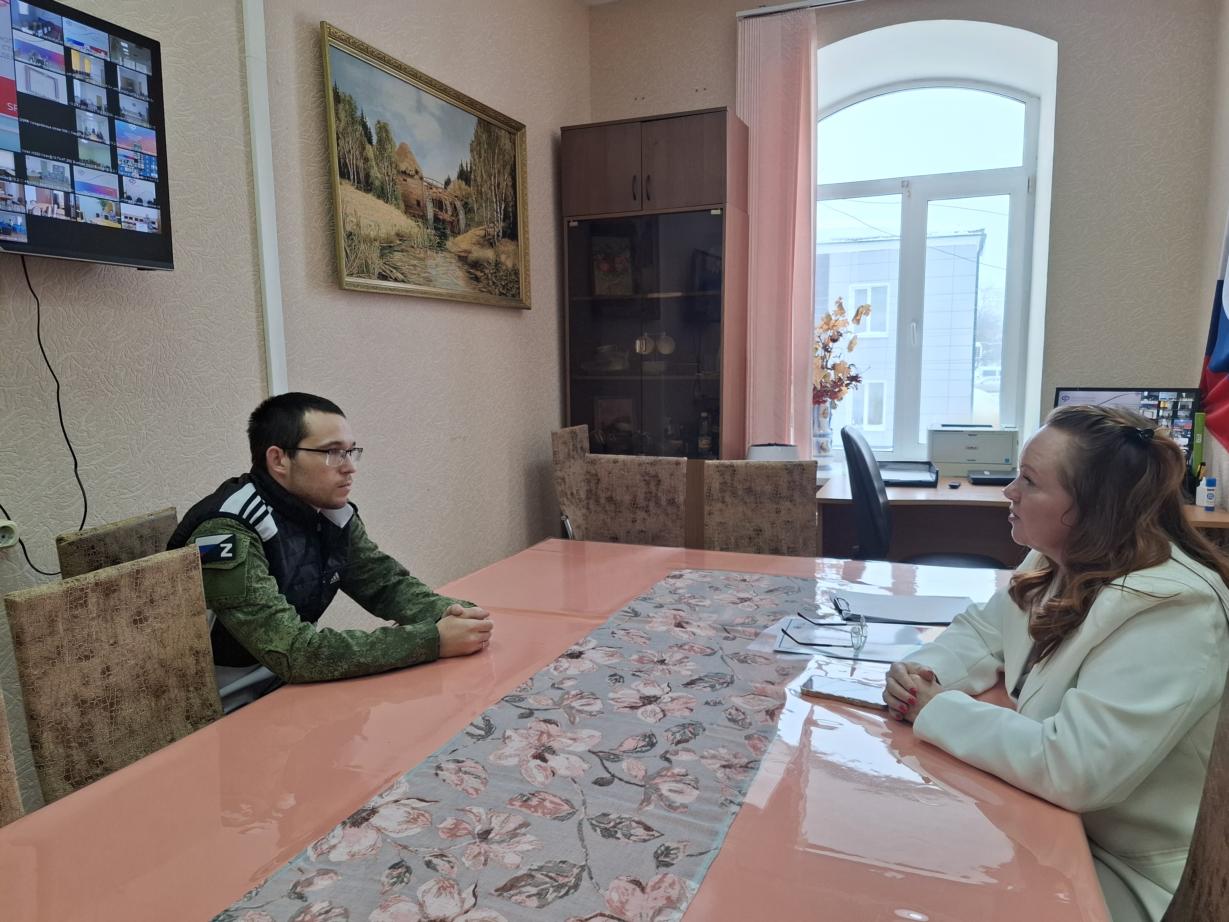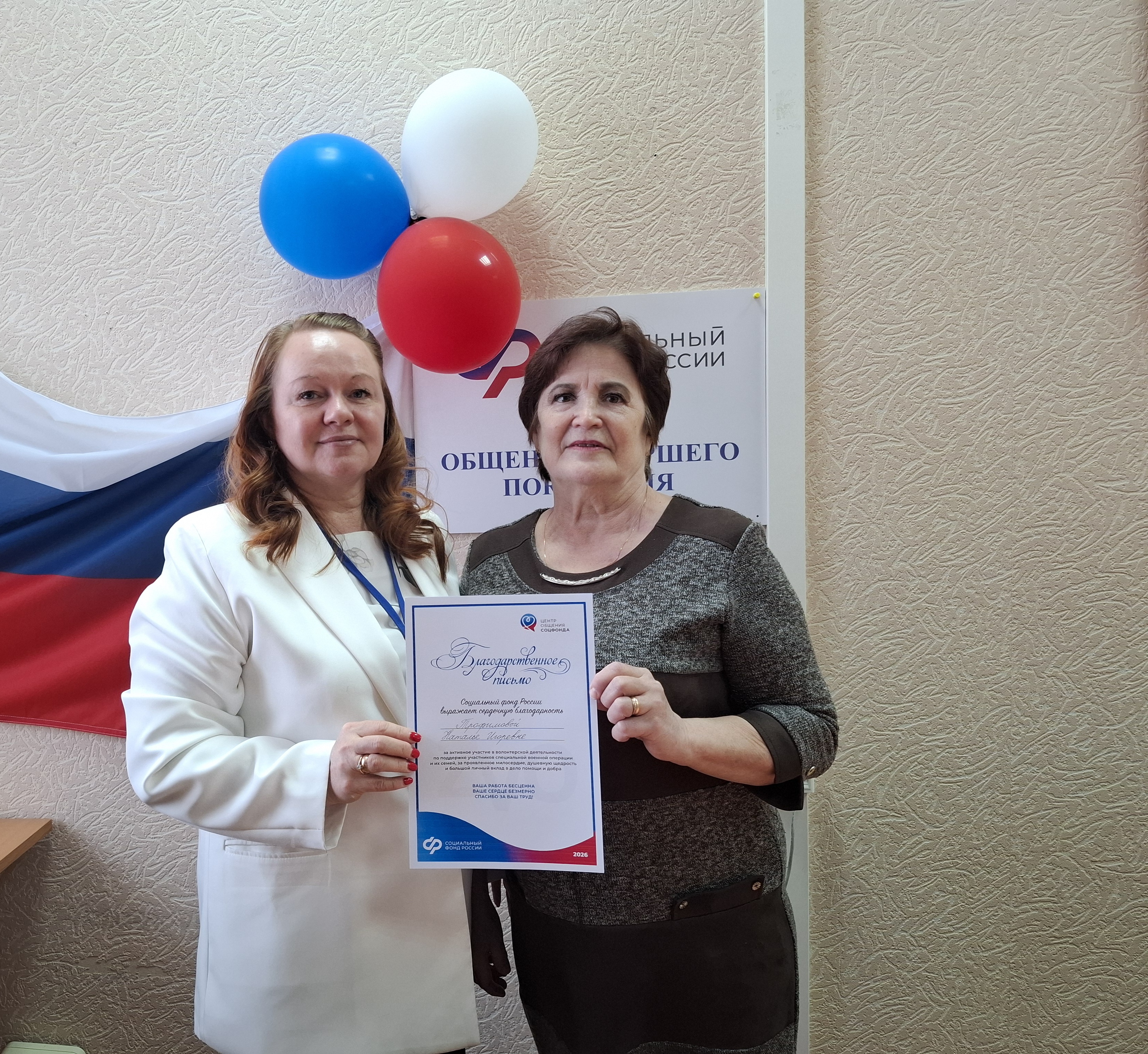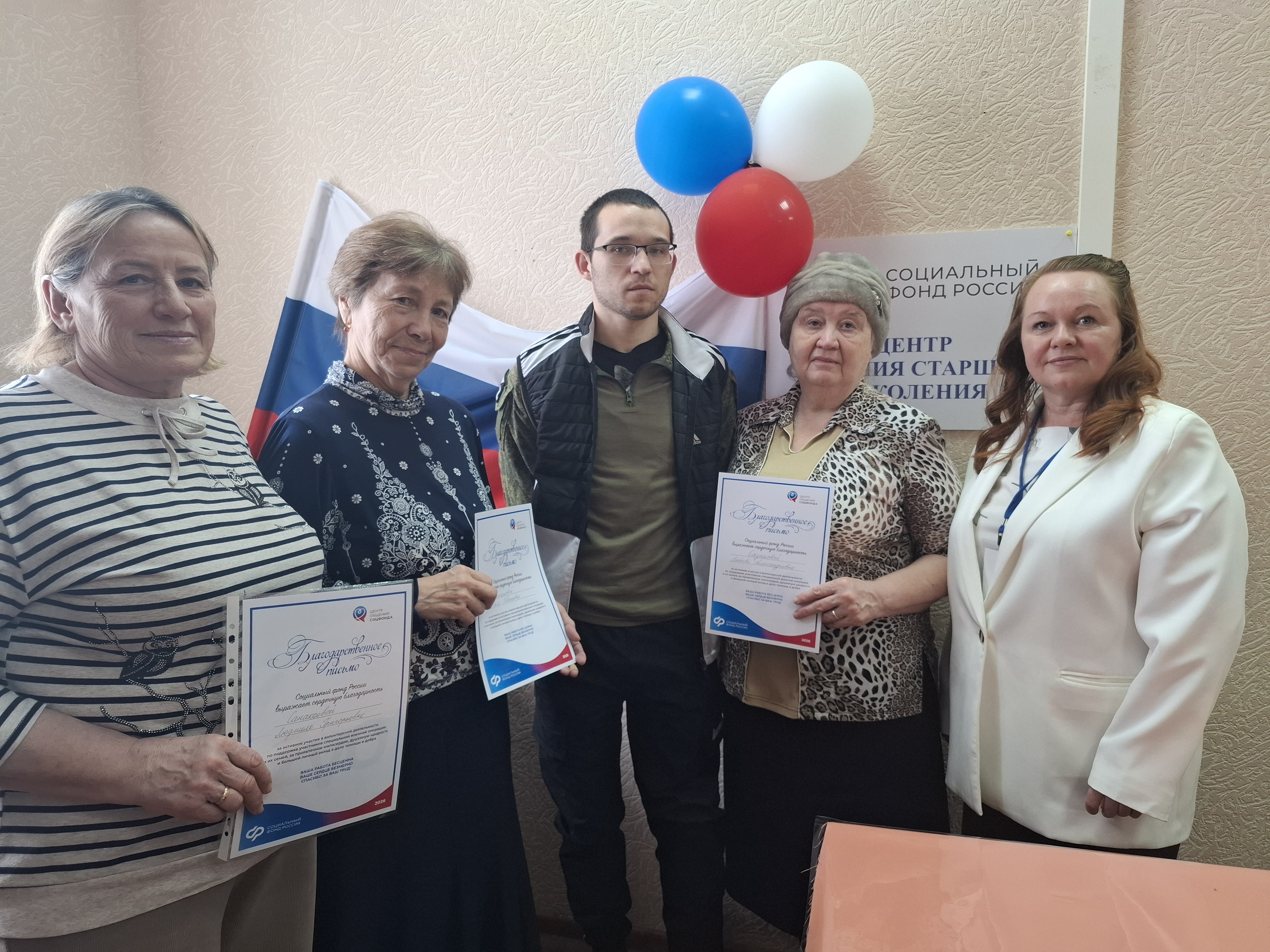 Несмотря на то, что встреча проходила в формате видео связи, атмосфера в центре была по- настоящему праздничной и душевной. Ключевым моментом мероприятия стала церемония вручения благодарственных писем активистам центра за участие в волонтерской деятельности по поддержке участников специальной военной операции.
