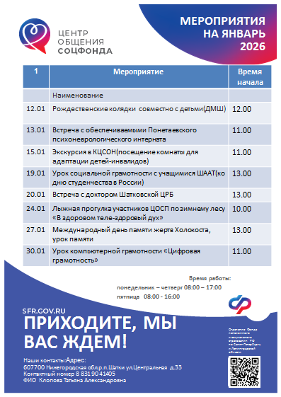 Центр общения старшего поколения был открыт в августе 2025 года на базе клиентской службы Отделения Социального фонда России в р.п. Шатки.