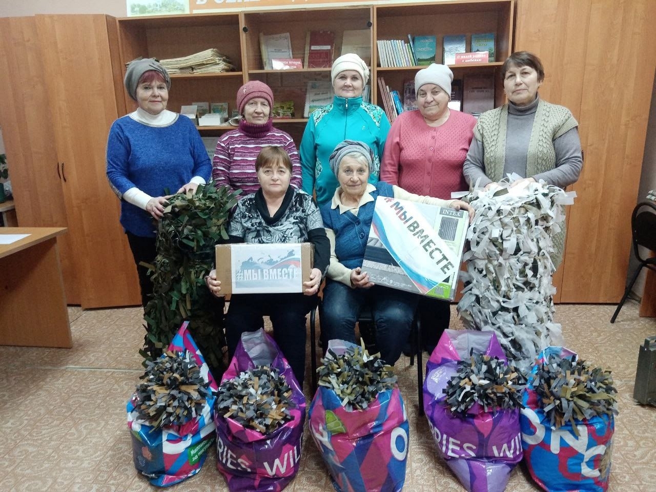 Активисты ЦОСП из села Архангельского уже третий год занимающаяся плетением маскировочных сетей (а сейчас ещё и шапочек) для СВО, официально не состоит ни в какой волонтёрской организации. Но ведь людям, для которых нет чужих проблем и готовых всегда прийти на помощь всем, кто в ней нуждается, не так и важно как их будут называть: добровольцами, волонтёрами, или просто людьми с добрым сердцем. Наши мастерицы работают в одном из помещений Архангельской сельской библиотеки четыре дня в неделю. Руководителем группы является Зрячева Ирина Ивановна, которая, в свою очередь, поддерживает связь с координатором группы Волонтёров СВО Шатковского округа Бабушкиной Натальей.