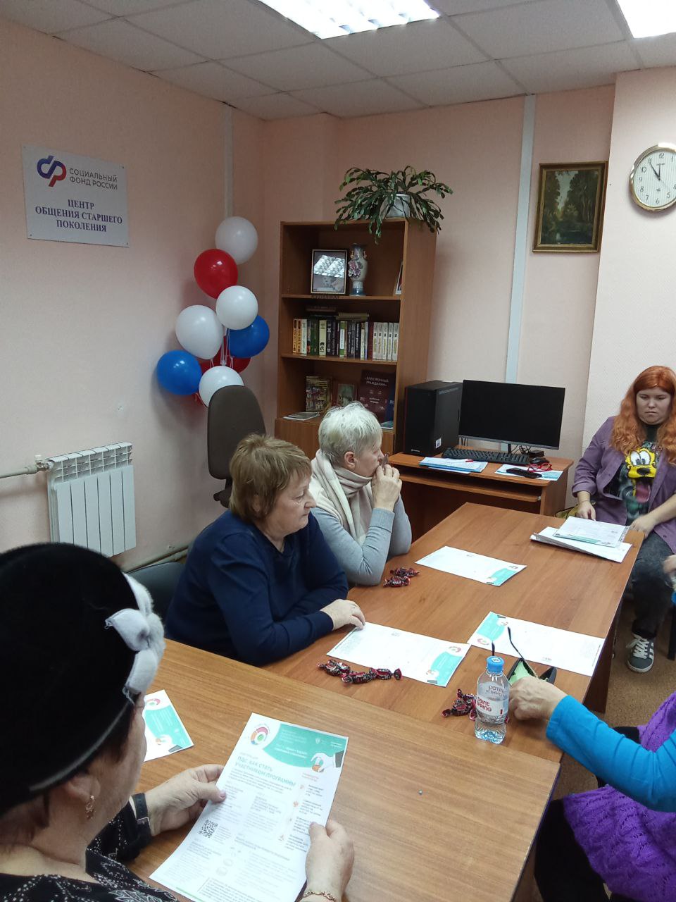 17 сентября руководителем Клиентской службы Перепелкиной Татьяной Юрьевной для активистов Центра общения старшего поколения была проведена беседа по теме «Финансовая безопасность для всей семьи: защити свои деньги» на базе поселковой библиотеки поселка Ильиногорск.