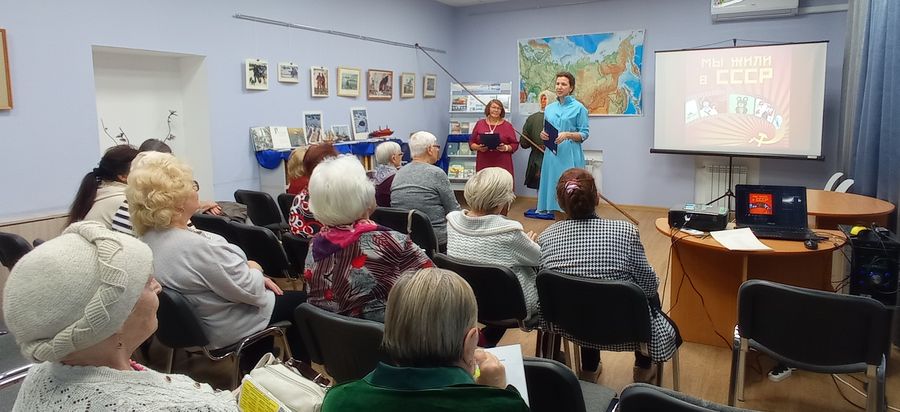 Центра общения старшего поколения посетили в Володарской центральной библиотеки 2 октября вечер–воспоминание «СССР: как мы жили были». В теплой душевной атмосфере вспоминали время советского детства и юности, смотрели фрагменты фильмов, слушали популярные песни, угадывали «крылатые фразы» из кинофильмов. Делились семейными традициями, которые бытовали в то время.