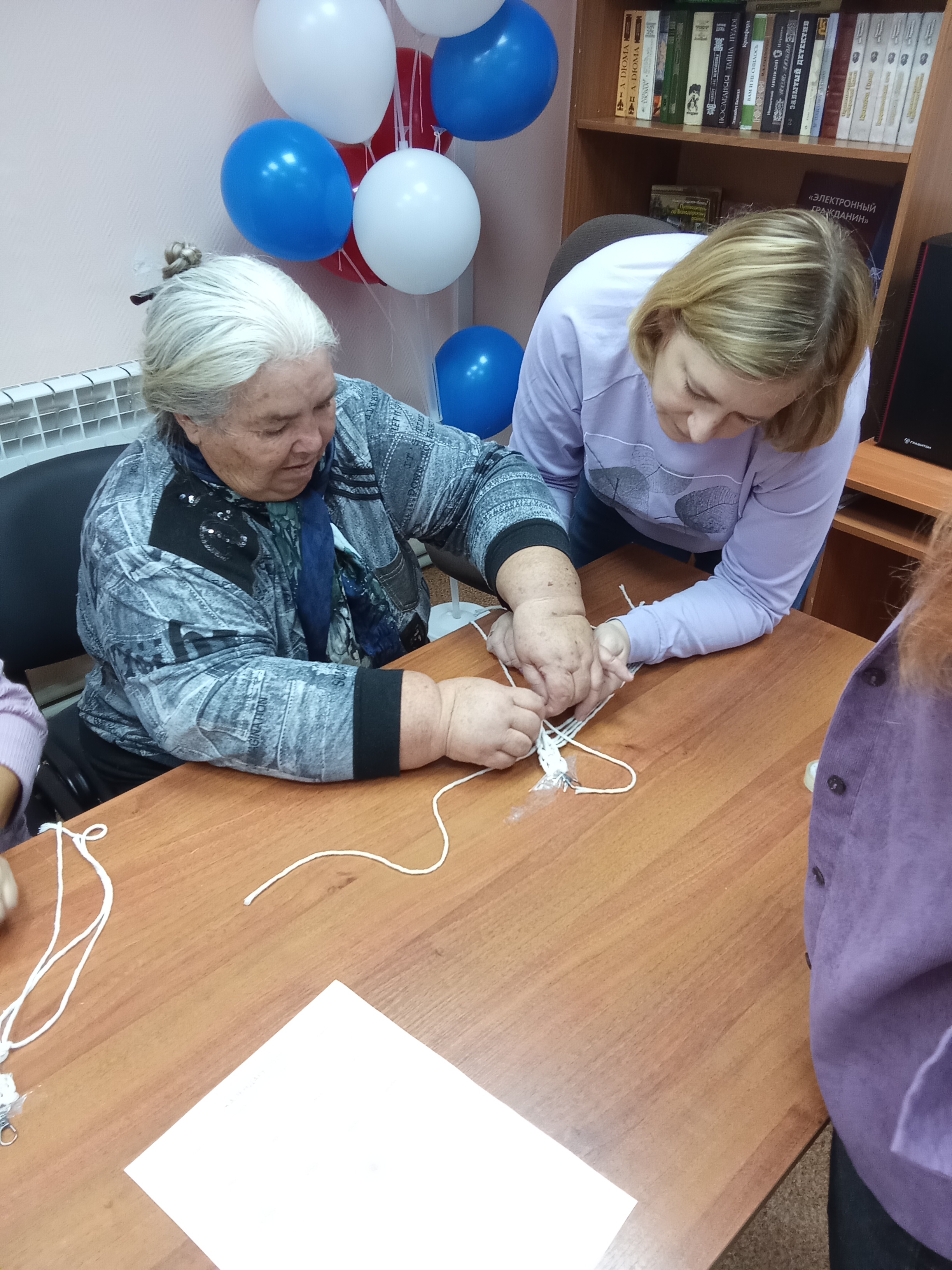 7 октября на занятие рукоделия участники Центра общения старшего поколения делали брелок при помощи макраме. Макраме — это техника узелкового плетения, разновидность прикладного искусства. В основе — завязывание узлов в определённой последовательности, что позволяет формировать уникальные текстуры и узоры. В результате кропотливой работы получились интересные сувениры для себя, либо в подарок. После работы участники устроили чаепитие с просмотром любимого фильма «Девчата».