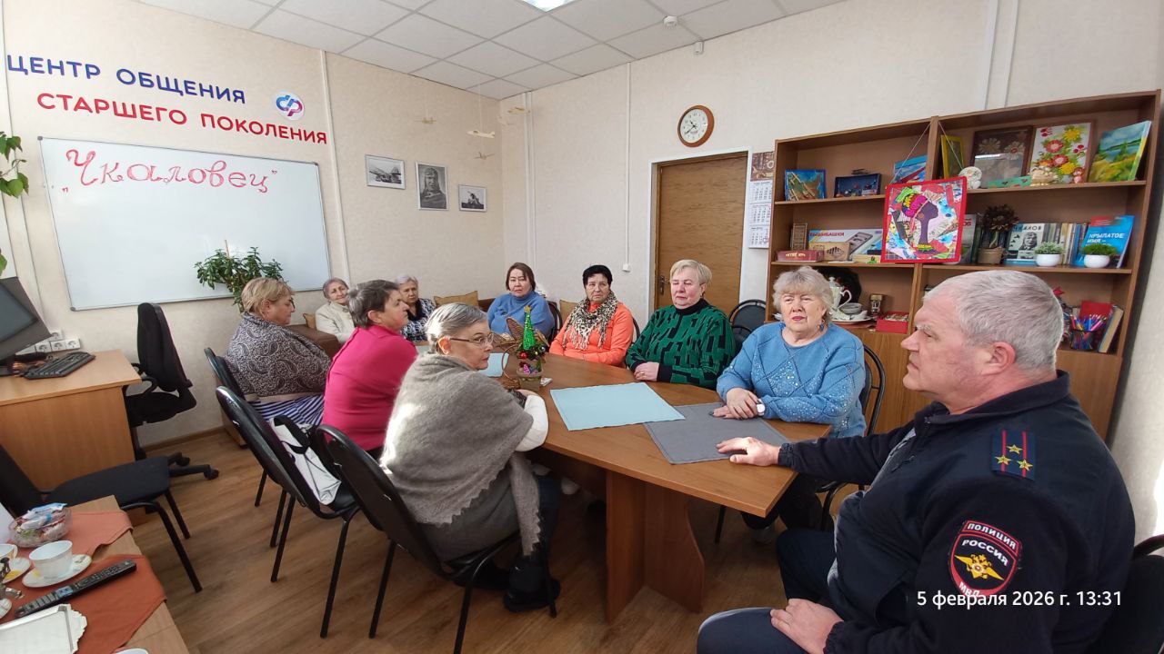 В Центре общения старшего поколения «Чкаловец» состоялась встреча активистов Центра с заместителями начальника отдела полиции (дислокация г. Чкаловск) МО МВД России «Городецкий» подполковником Богачевым Сергей Борисовичем и майором Смирновым Николаем Александровичем. Встреча была проведена в форме профилактической беседы на тему «Как уберечь себя и близких от мошенничества».