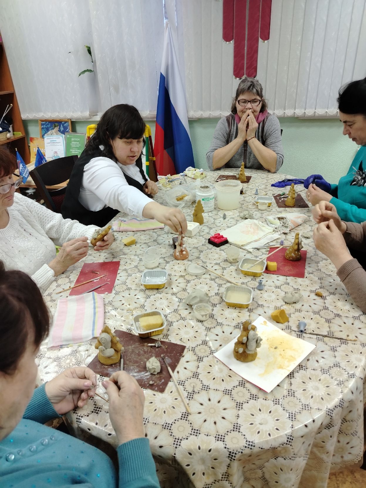 28.12.2023 года в гостях у активистов Центра общения старшего поколения "Ветер Надежд" на базе клиентской службы(на правах группы) в Дивеевском муниципальном округе Нижегородской области побывала Малыгина Татьяна Владимировна - мастер производственного обучения, со своими работами из глины.