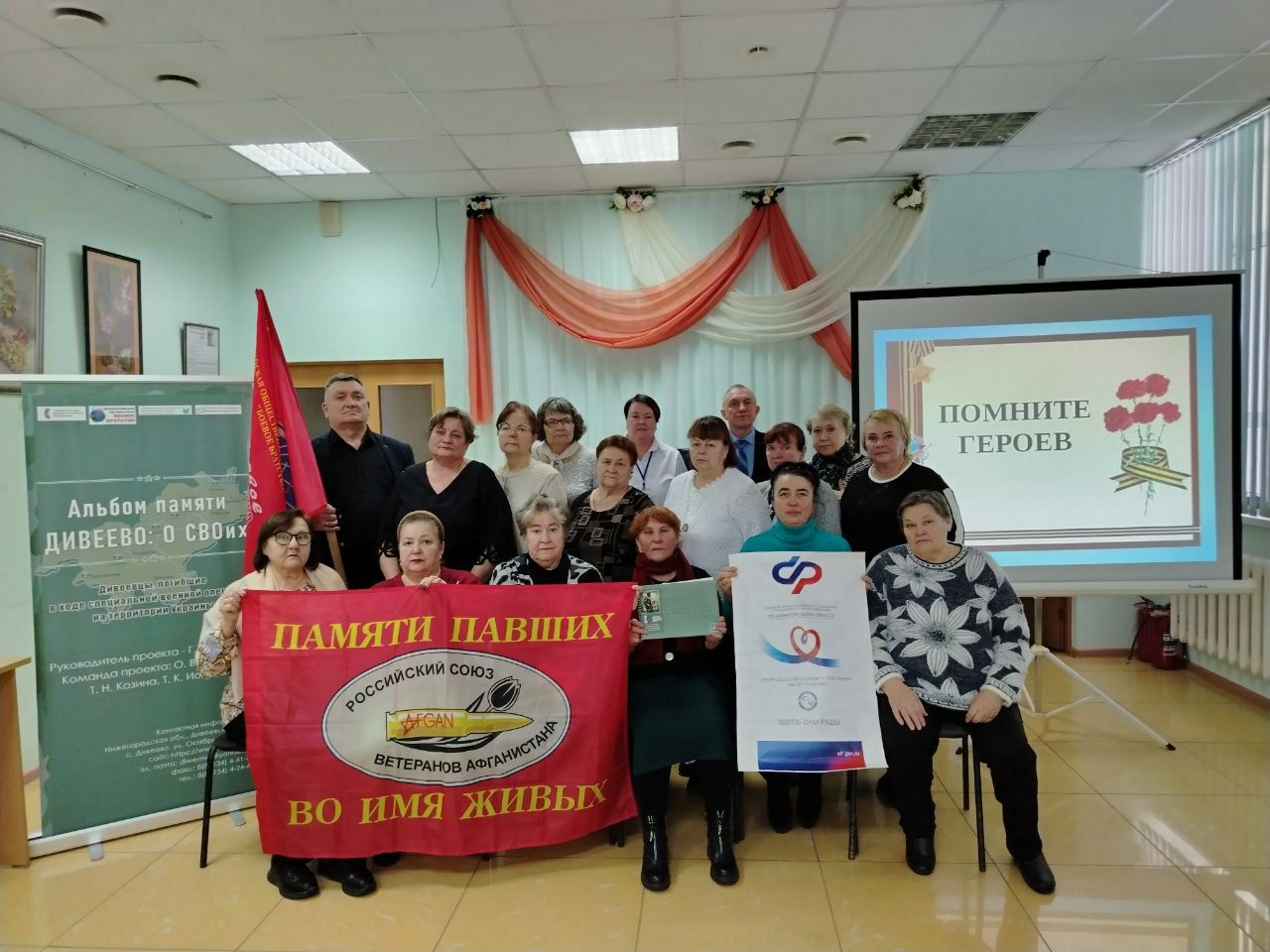 14.12.2023 активисты Центра общения старшего поколение "Ветер Надежд" на базе клиентской службы (на правах группы) в Дивеевском муниципальном округе Нижегородской области были приглашены на памятное мероприятие посвященное "Дню героев отечества", которое проходило в актовом зале МБОУ " Дивеевская СОШ".