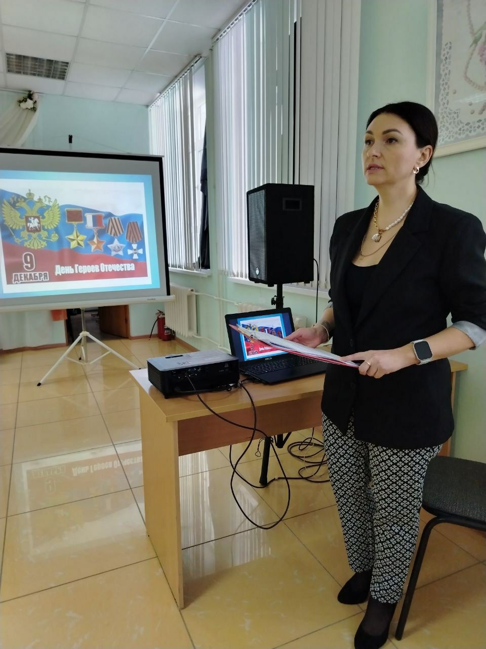 На памятном мероприятии присутствовали ветераны боевых действий, члены семей погибших земляков локальных конфликтов и СВО, учреждения военно-патриотического воспитания молодёжи "Боевое Братство", " ЮнАрмии", активисты ЦОСП и учащиеся школы. Проникновенно до мурашек звучали поздравления, слова благодарности и музыкальные композиции, стихи, прозы в честь героев земляков. С поздравлением и словами благодарности выступила активистка центра ЦОСП В. А. Цибуцынина , она вспомнила историю создания праздника, дала определение понятию "герой", привела примеры героических поступков наших земляков.