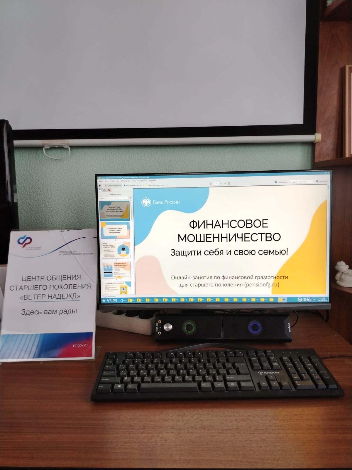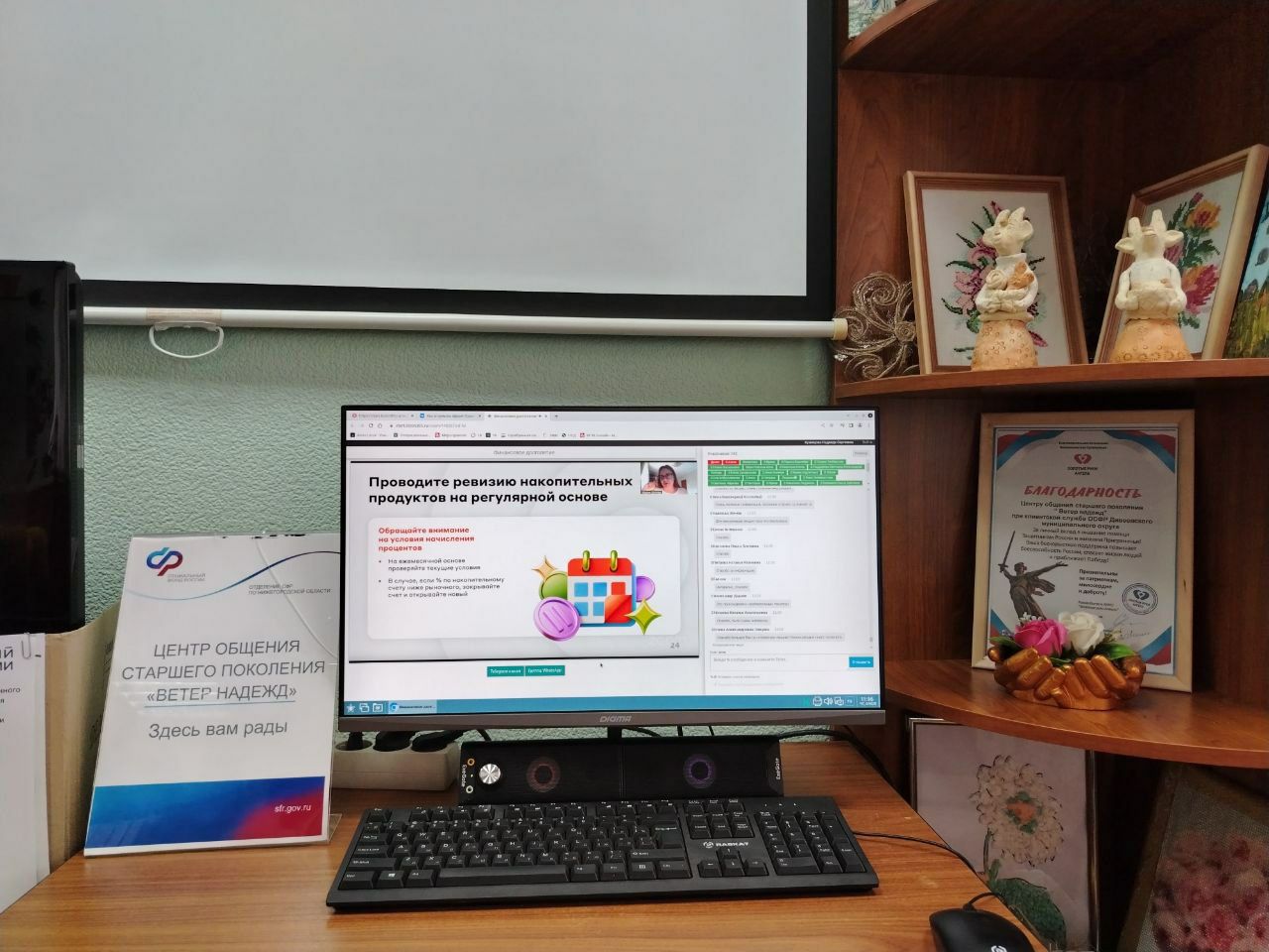 30 ноября 2023 года в Центре общения старшего поколения "Ветер "Надежд" на базе клиентской службы (на правах группы) в Дивеевском муниципальном округе Нижегородской области прошло мероприятие в режиме онлайн по повышению финансовой грамотности населения старшего поколения с представителями Банка России.