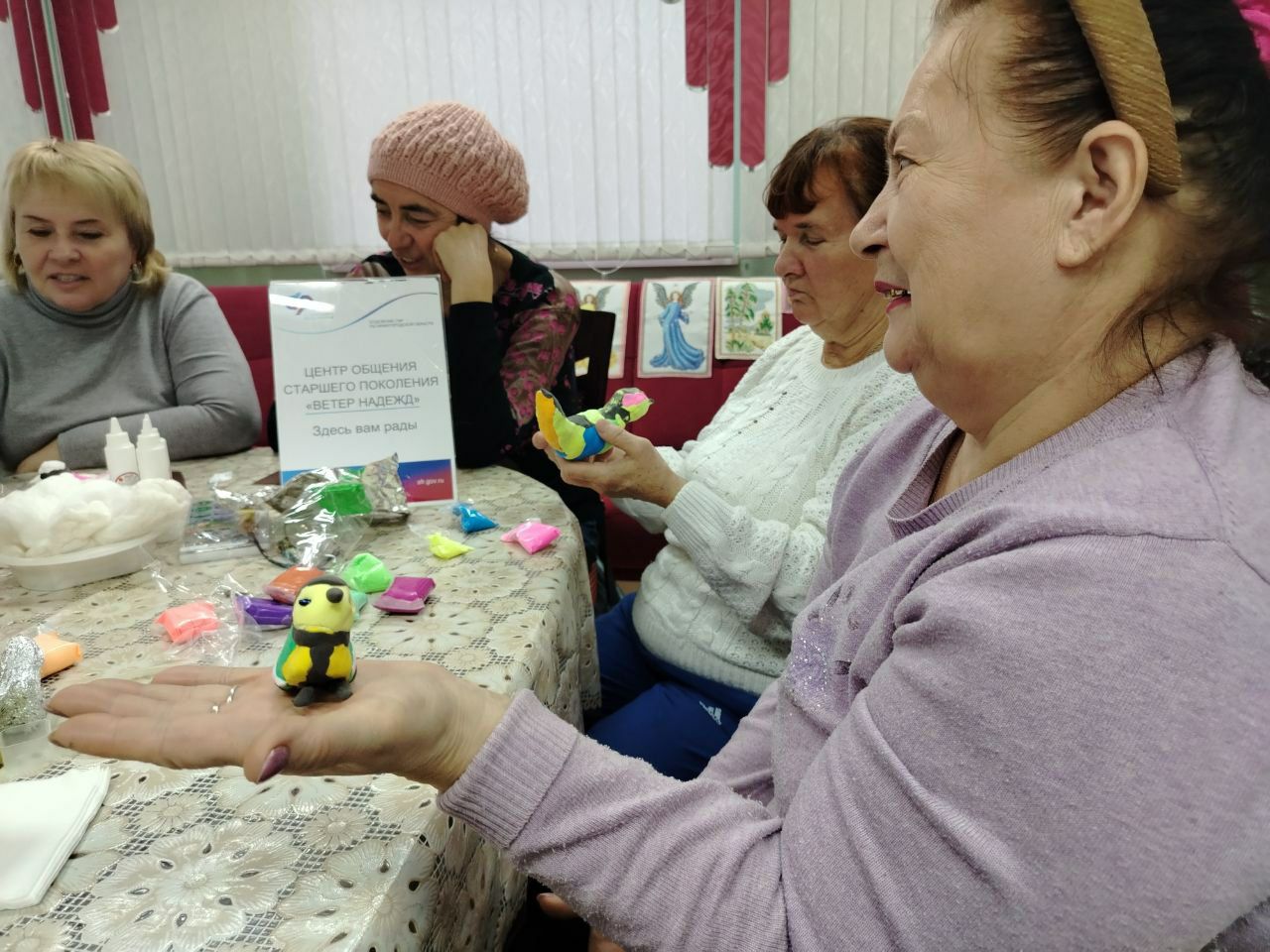 У Активистов центра общения старшего поколения "Ветер Надежд" на базе клиентской службы (на правах группы) Дивеевского муниципального округа Нижегородской области в преддверии новогоднего праздника побывала в гостях заслуженная мастерица по лепки из глины из мастерской "Параскева" Галина Васильевна Мурзина.