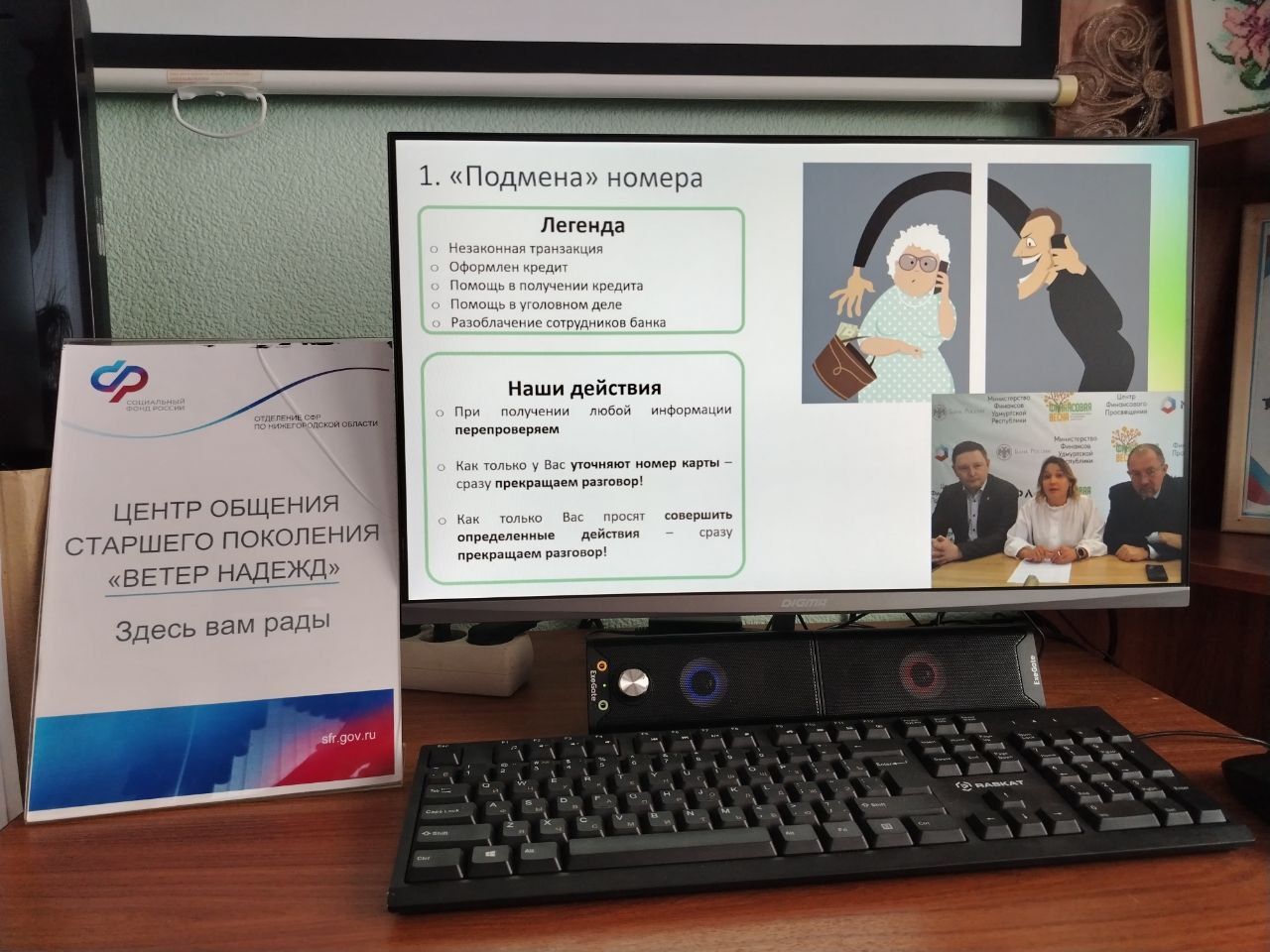 🙍♀👨💼 Центр общения старшего поколения "Ветер Набежд" на базе клиентской службы ( на правах группы) Дивеевского м. о. Нижегородской области 19 января 2024 года посетили представители МО МВД России "Дивеевский" с целью профилактической беседы "О возможных способах совершения мошеннических действий с использованием ИТ - технологий и мерах по их предотвращению"