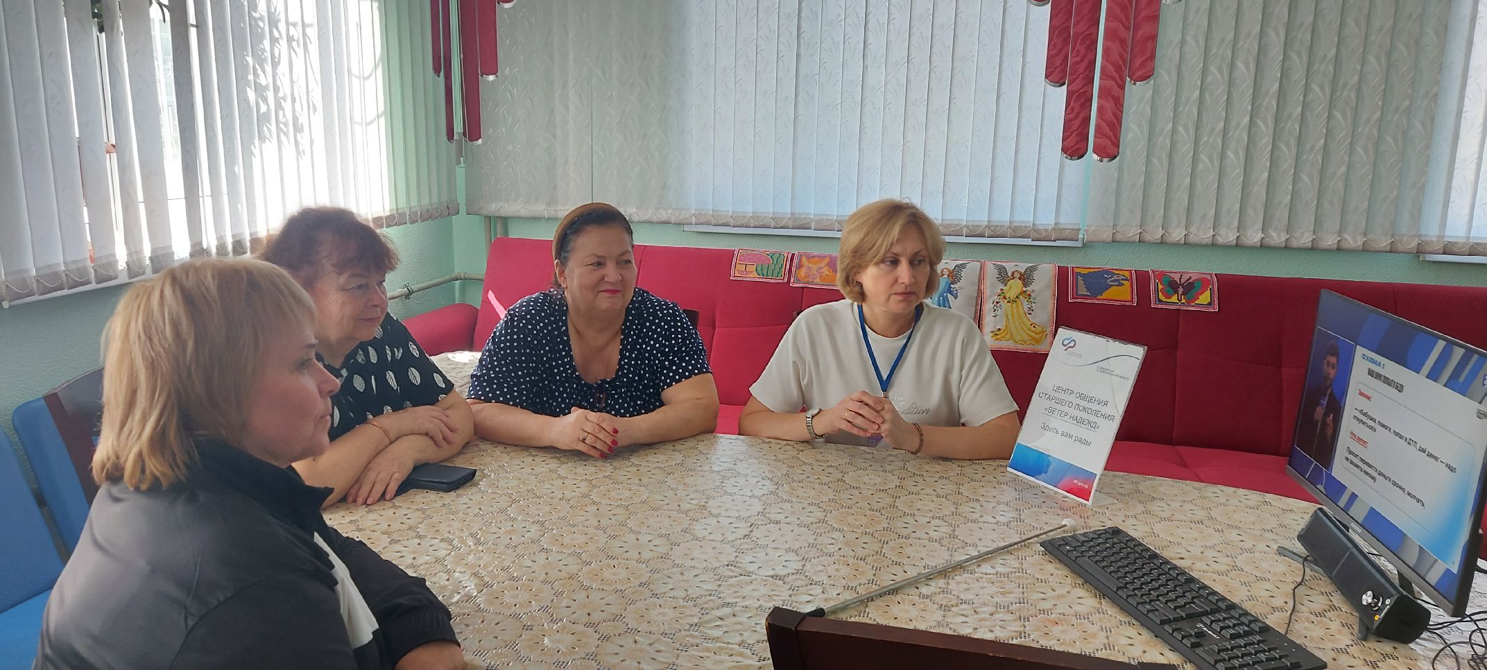 Гостей познакомили с работой центра, в котором граждане " серебренного" возраста устанавливают дружеские контакты, поддерживают активный образ жизни, с интересом и пользой проводят время, участвуют в различных мероприятиях, турнирах, соревнованиях, викторинах, смотрят любимые фильмы, совместно читают книги, проводят мастер-класс по рукоделию, посещают музеи, выставки, играют в компьютерные игры, принимают участие в обучающих лекциях.