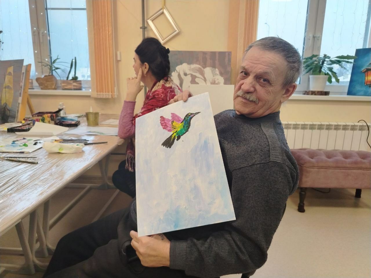 Мастер-класс доказал, что творчество не знает возрастных границ. Он стал не только уроком живописи, но и красивой метафорой: подобно колибри, человек в любом возрасте может сохранять лёгкость, любопытство к миру и тягу к прекрасному.