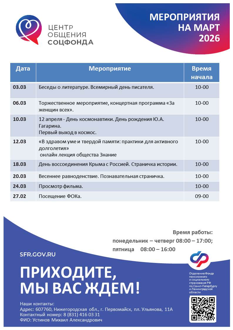Центр общения старшего поколения был открыт 24 декабря 2024 года на базе клиентской службы Отделения Социального фонда России в г. Первомайск.