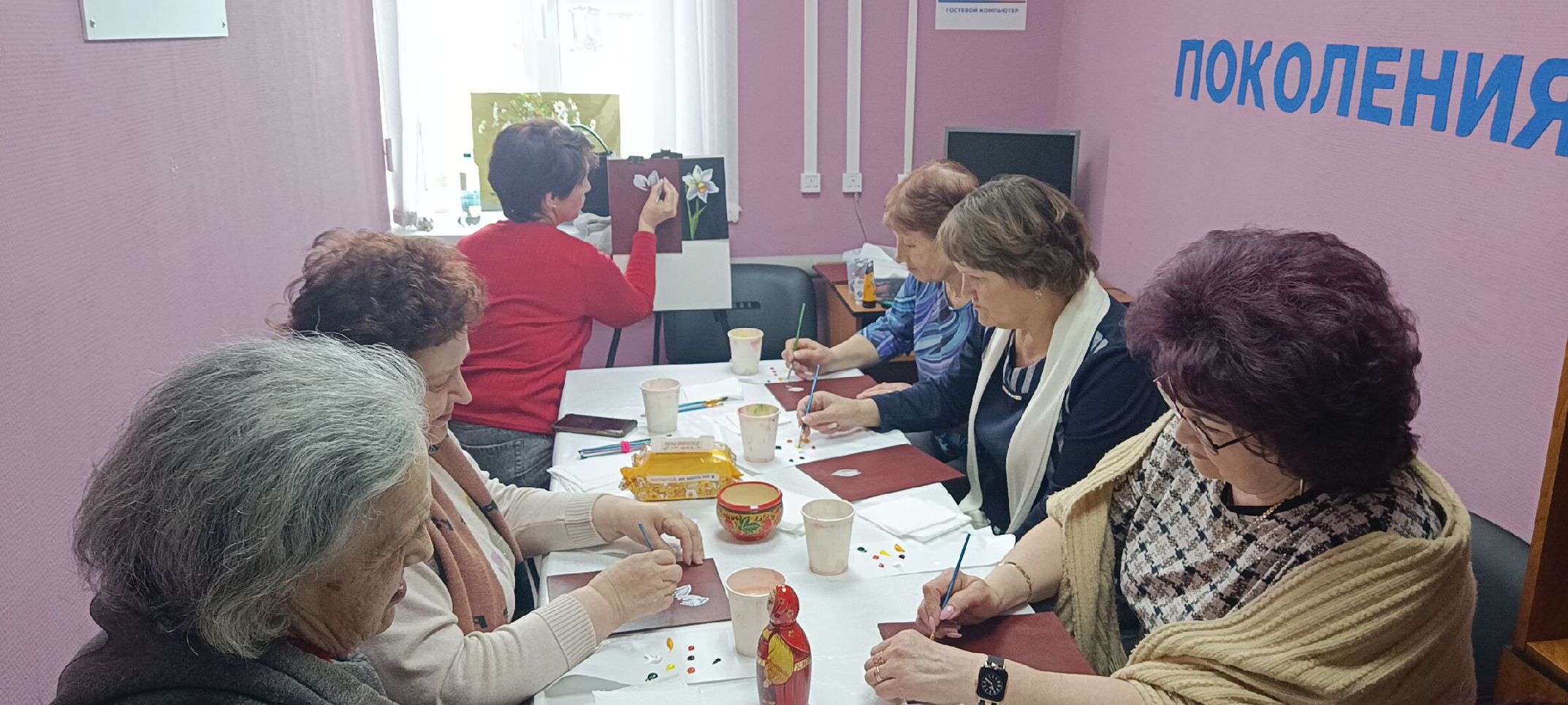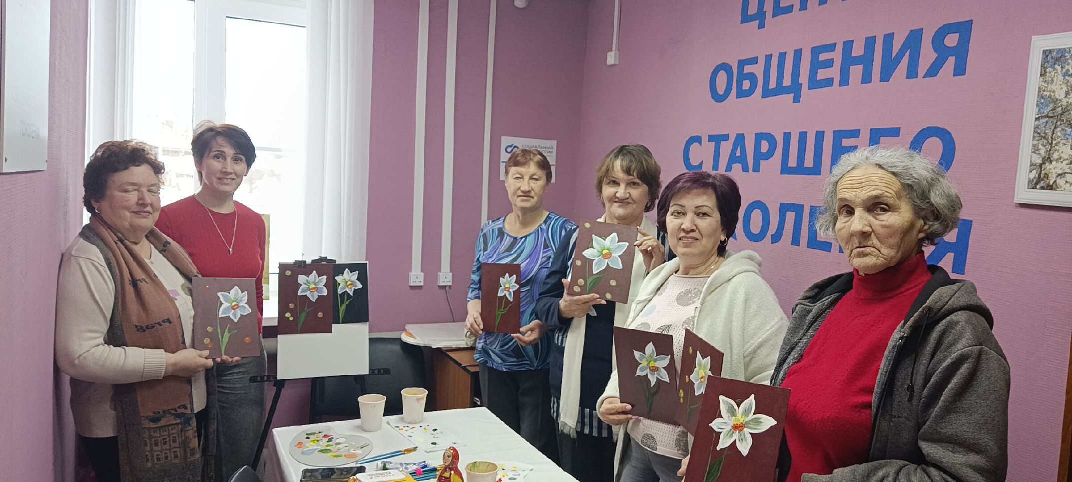 04.03.2026 для посетителей центра общения старшего поколения прошел мастер-класс «Цветут цветы» по работе акрилом и темперой. Мастер-класс провела художник Ламазиева Наталия Александровна.