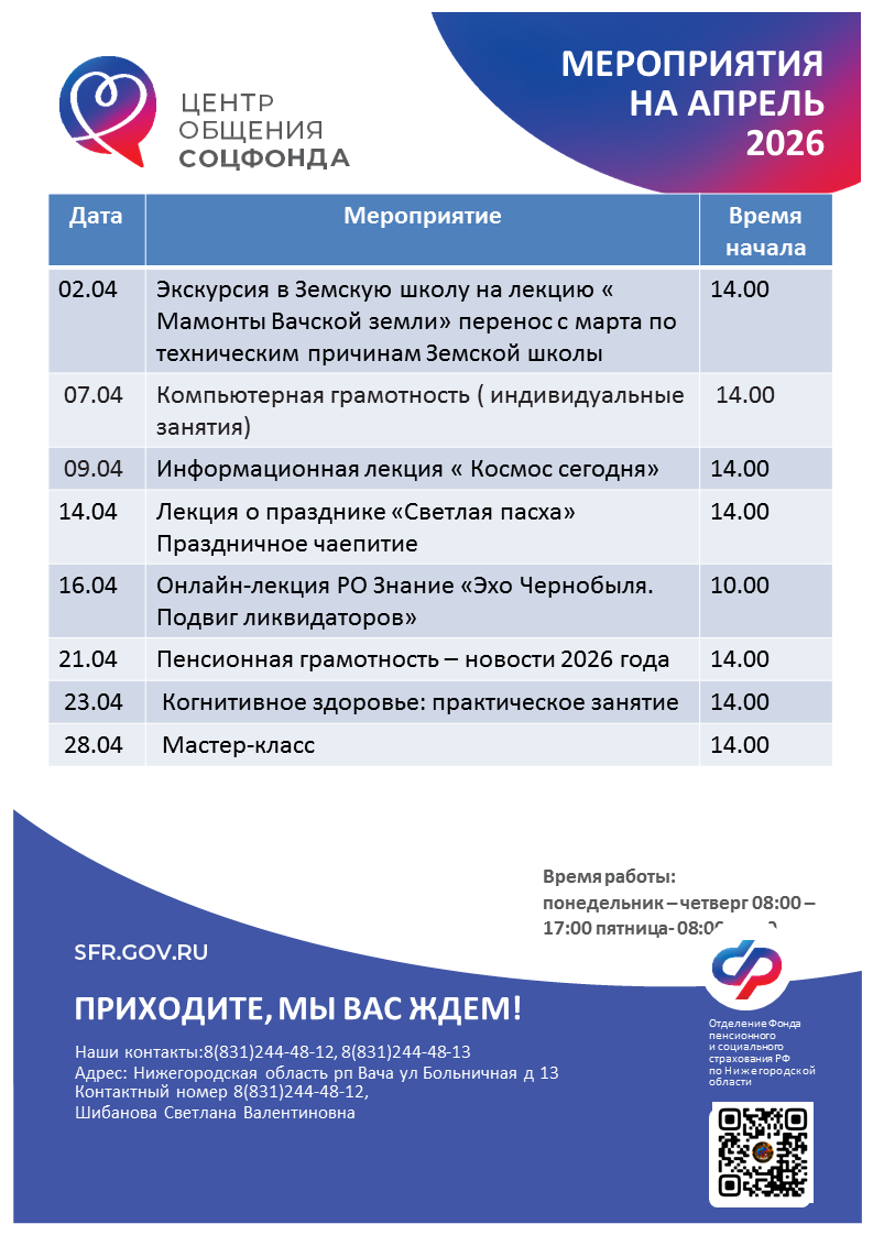 Центр общения старшего поколения был открыт в августе 2025 года на базе клиентской службы Отделения Социального фонда России в р.п. Вача.
