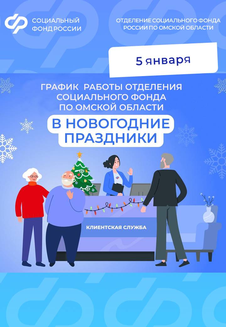 5 января – день работы клиентских служб Отделения СФР по Омской области в новогодние праздники.